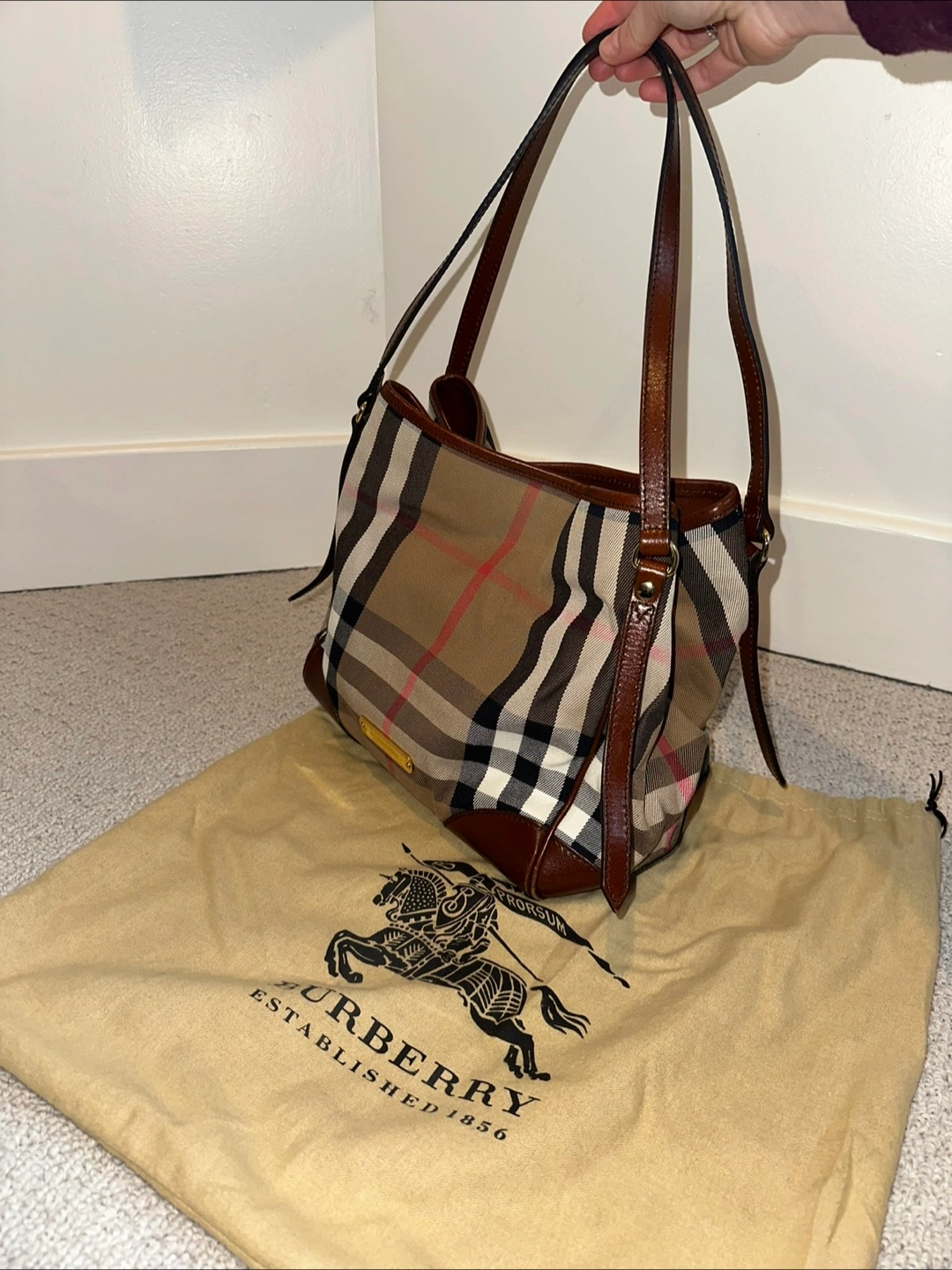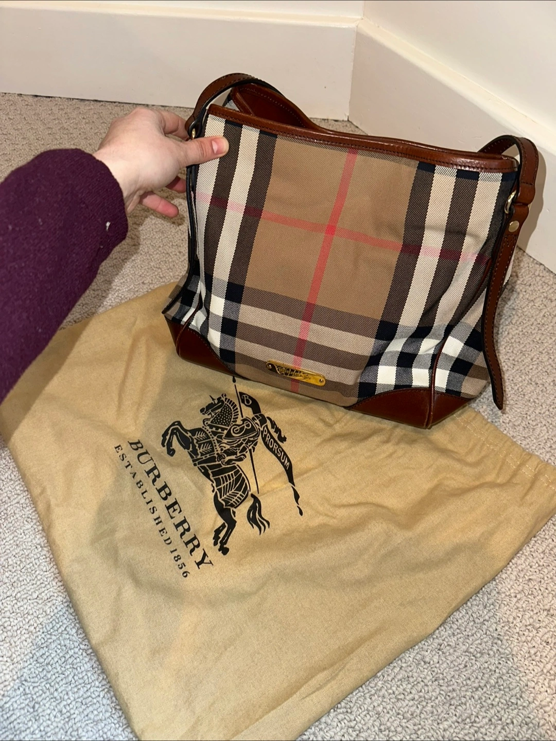Selling a Burberry shoulder bag with the classic Burberry plaid pattern. It's in great condition and comes with its original dust bag. Perfect for adding a touch of classic style to any outfit!