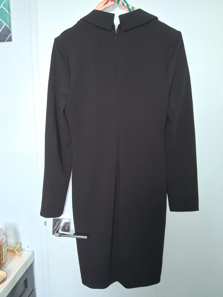 A stylish black blazer dress from Le Chateau, perfect for a night out or a professional look! It's a size P/S.