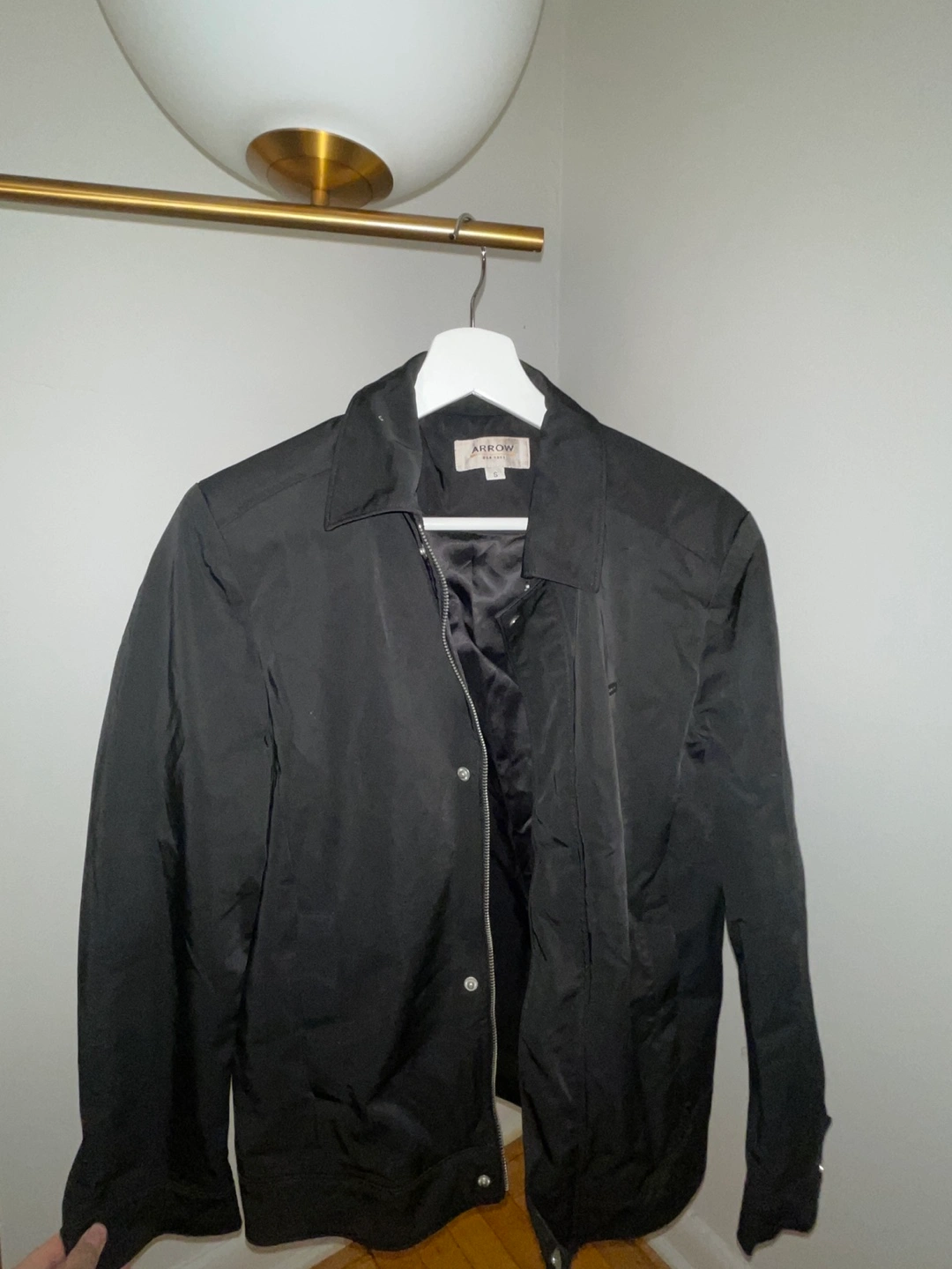 I'm selling an Arrow Premium jacket in black. It's a size small and in great condition. It's perfect for layering or wearing on its own during milder weather. Feel free to message me with any questions! Just needs a light steam.