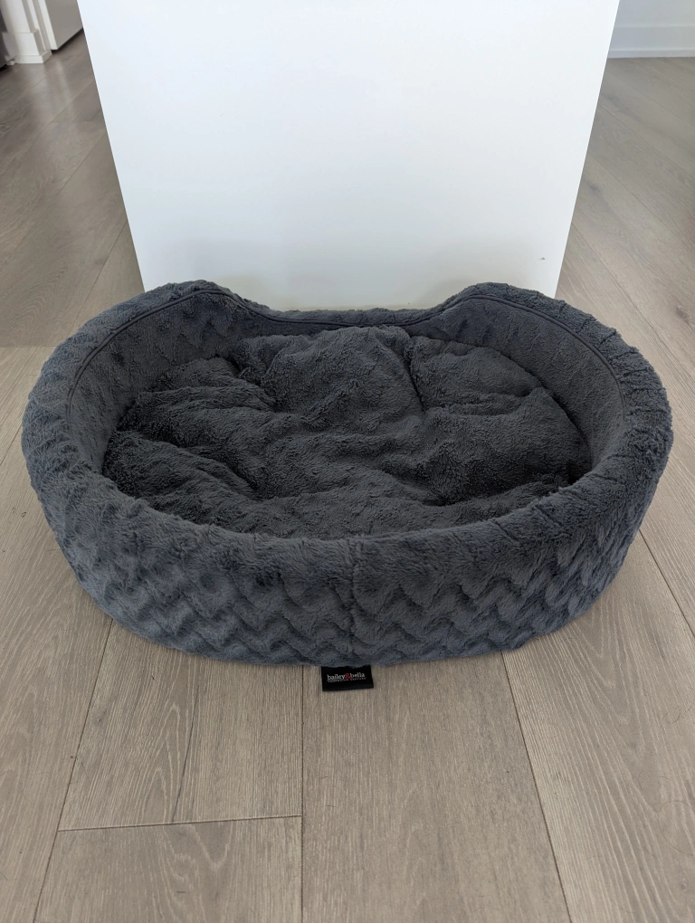 Selling a super comfy pet bed from Bailey & Bella! It's in great condition and perfect for your furry friend to curl up in. The plush material is so soft and cozy! It's a stylish addition to any room. Retails at $59. 67 x 57 x 17 cm