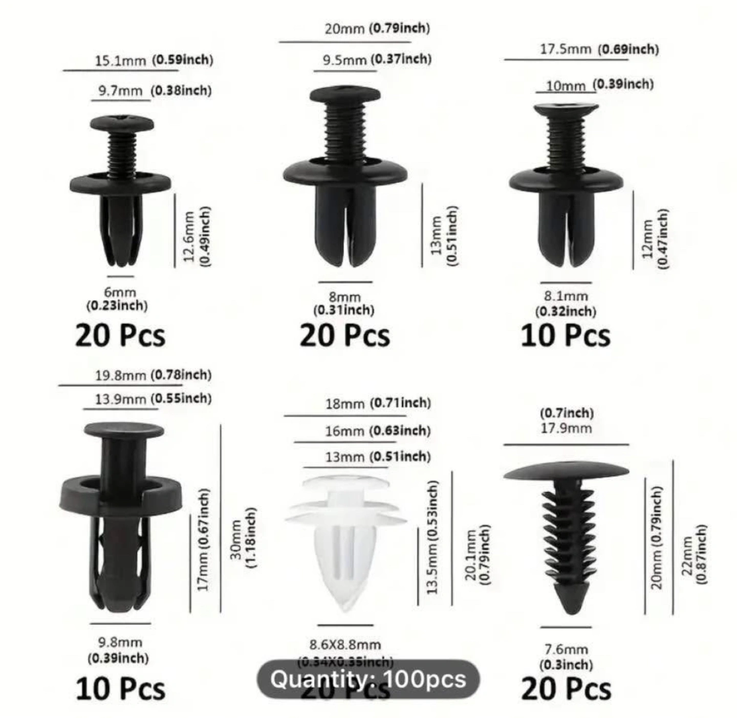 100pcs Black Plastic Rivets - Wall Mount Easy Install Car Bumper Fasteners for Toyota, Ford, Kia, Nissan, Yamaha - Versatile Accessory Rivet Screws for Car Repair and Accessories