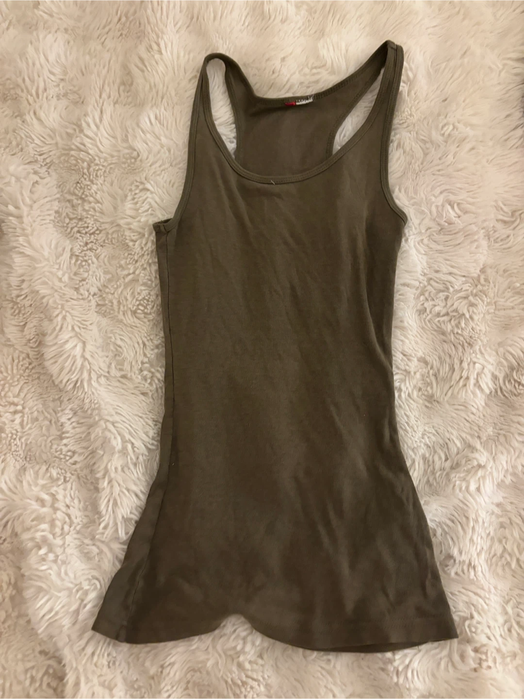 Selling a simple olive green tank top. It's in great shape and ready for a new home! Perfect for layering or wearing on its own, this tank is a versatile addition to any wardrobe