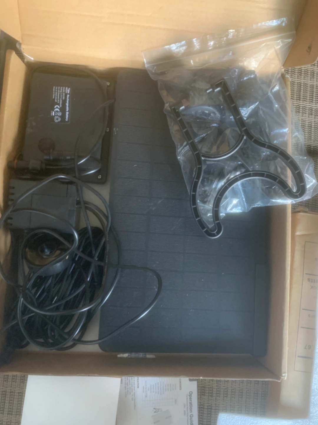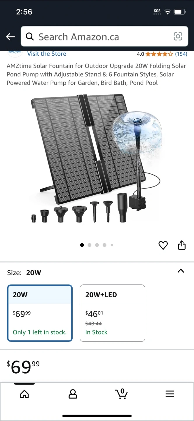 I'm selling an AMZtime Solar Fountain for outdoor use! It's a 20W folding solar pond pump that comes with an adjustable stand and 6 fountain styles. It's solar powered, making it perfect for a garden, bird bath, or pond pool. Includes the box and all components!