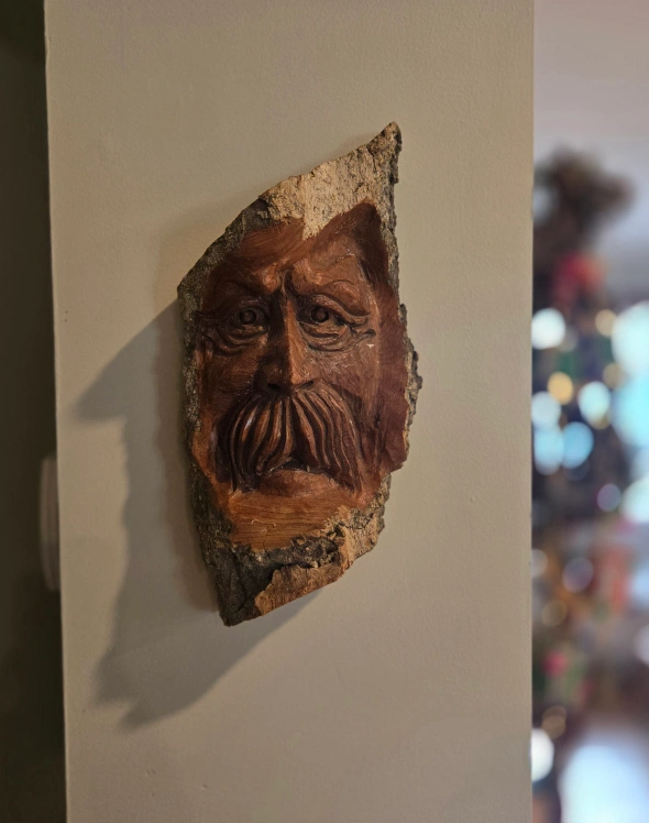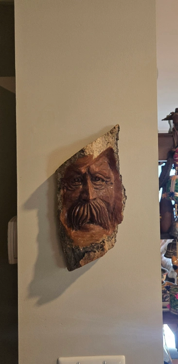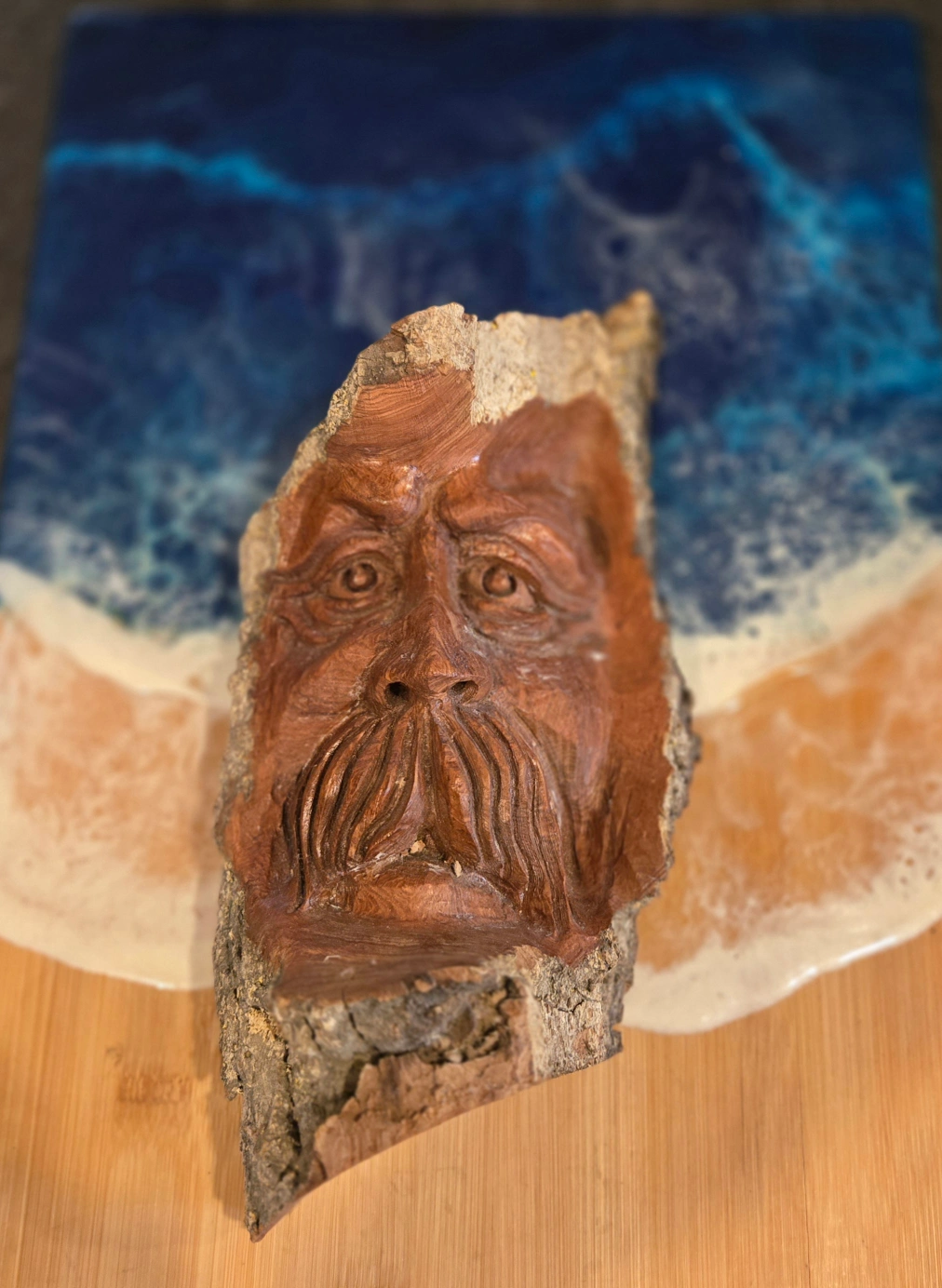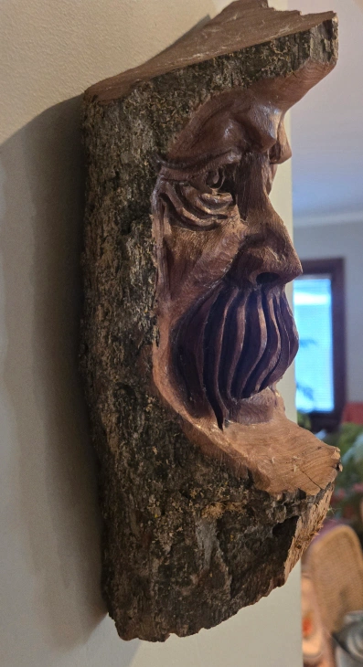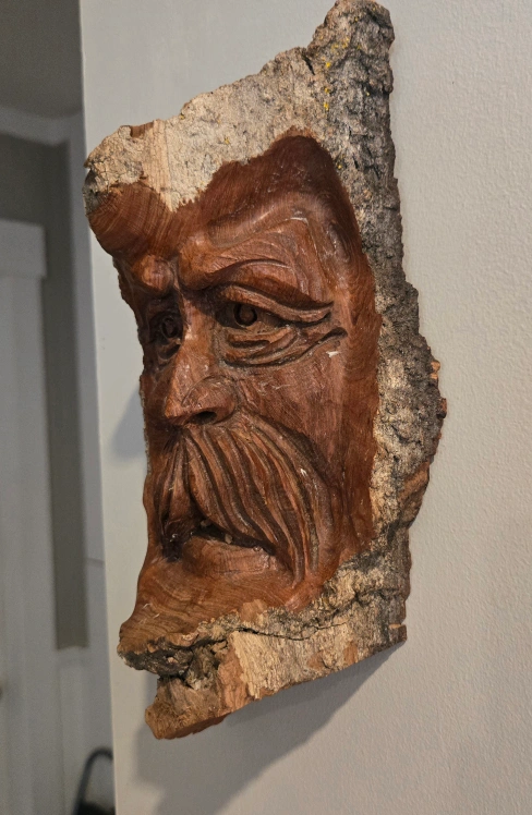 This is a hand-carved Wood Spirit" or "Tree Spirit" carving. This unique piece of art, was crafted by Elmer Anderson. It's number #4 in the series. 8" Tall x 5" Wide