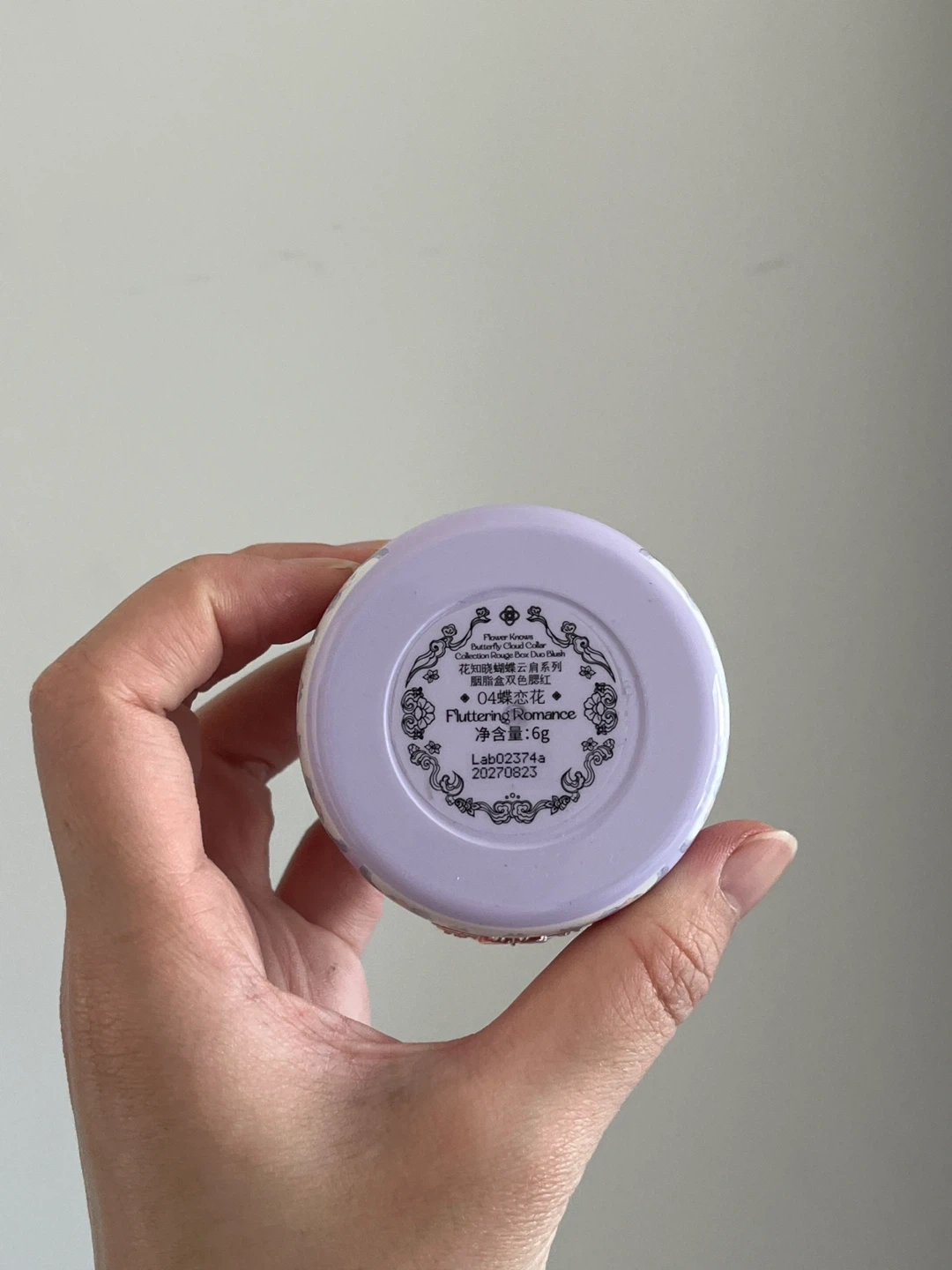 Selling a Flower Knows Fluttering Butterfly Blush! It's a beautiful blush with a unique design. - Color: 04 - Net weight: 6g - Expiry Date: 2027 June 23