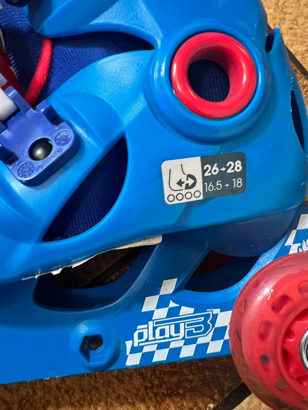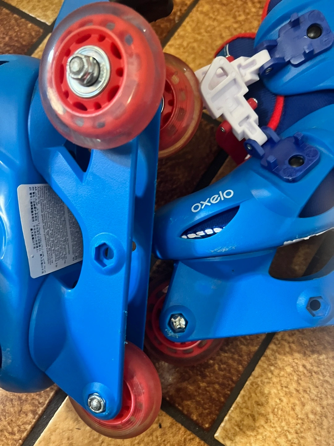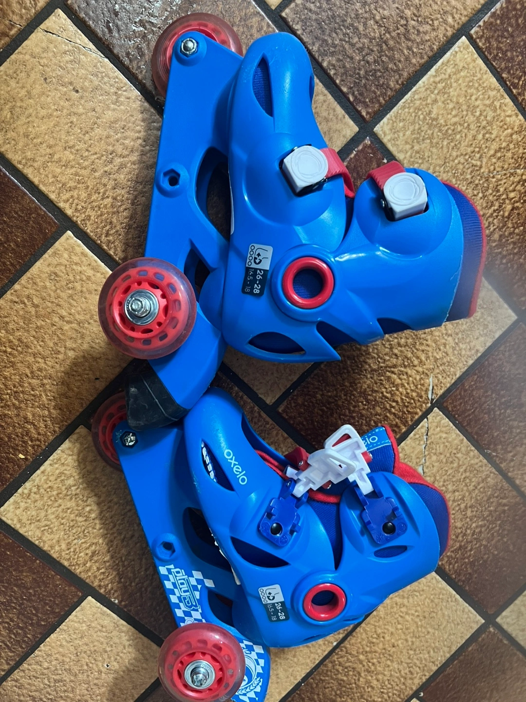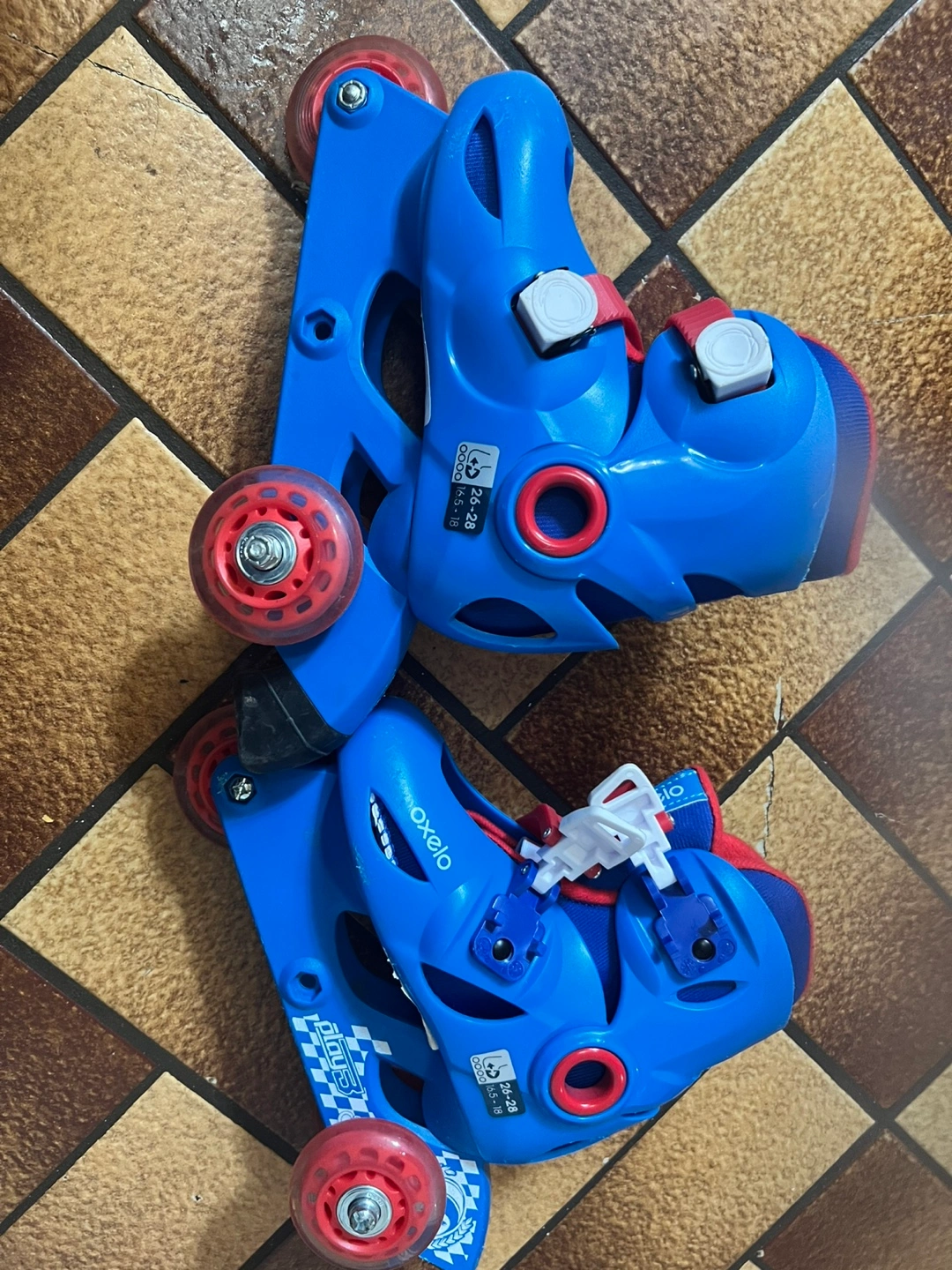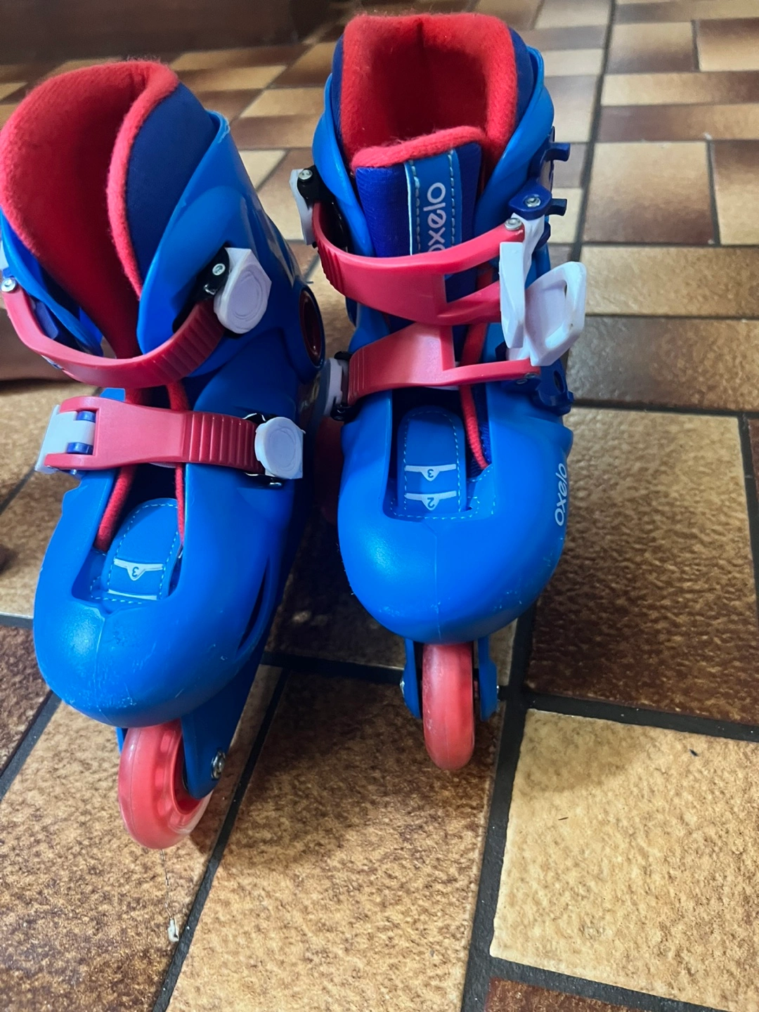 Selling a pair of Oxelo kids roller skates in great condition! They're blue and red and size 26-28 (16.5 - 18 cm). Perfect for little ones learning to skate