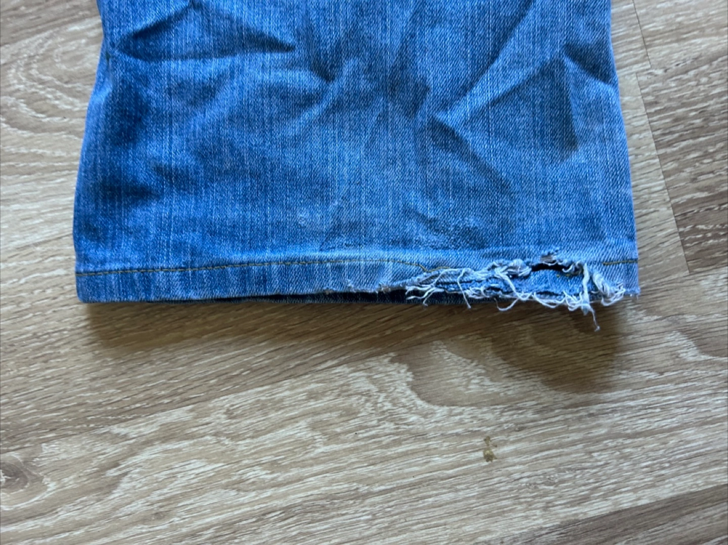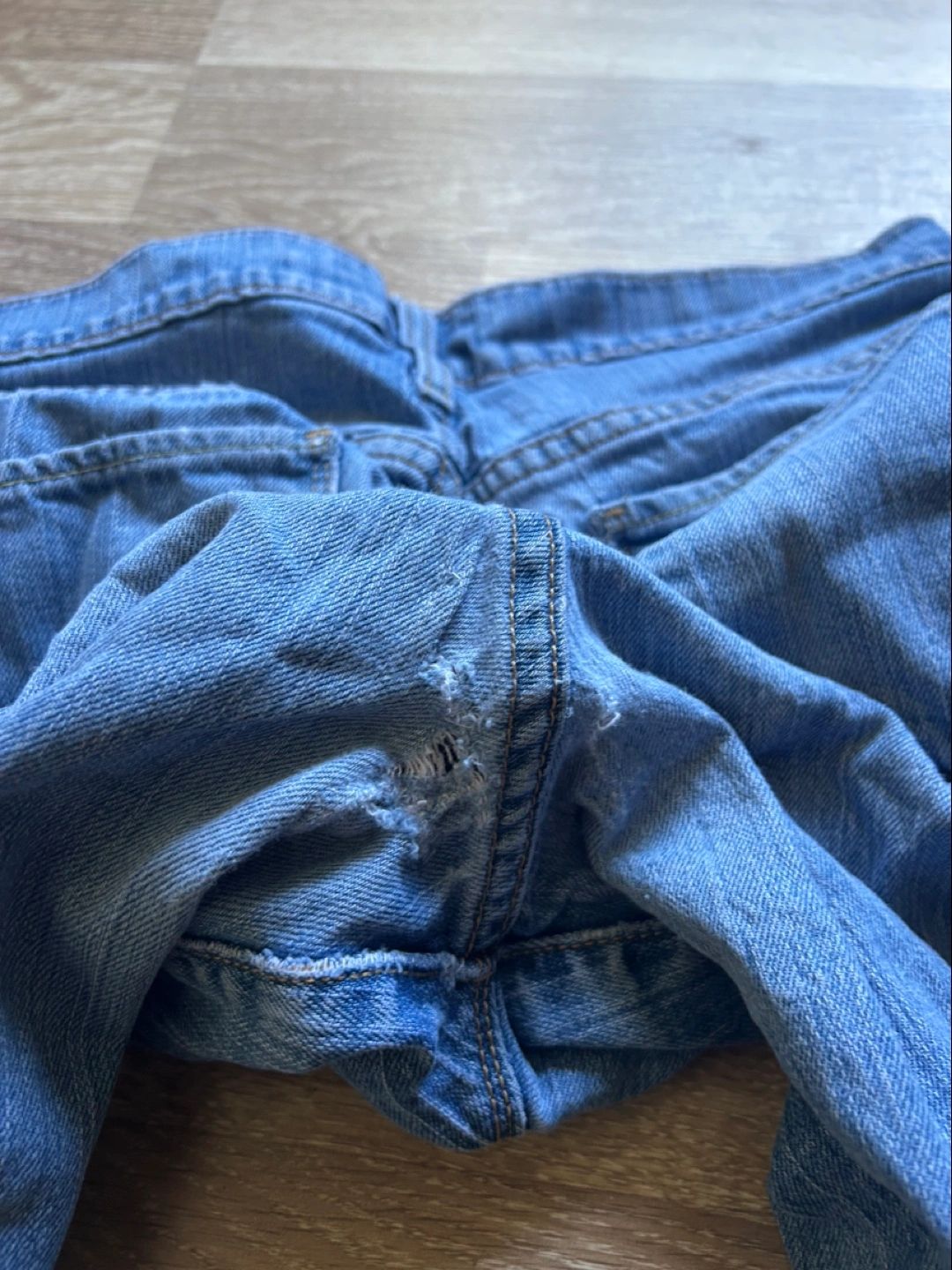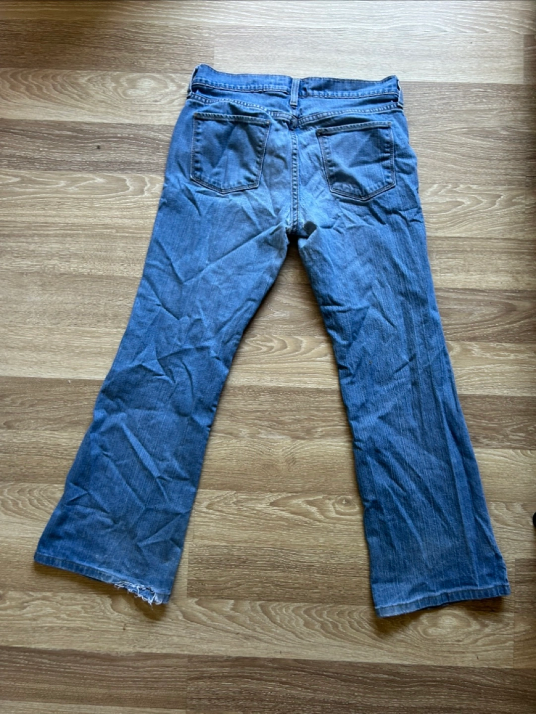 Selling a pair of Old Navy flare jeans! They're blue denim, and show some signs of wear at the hems and seams.