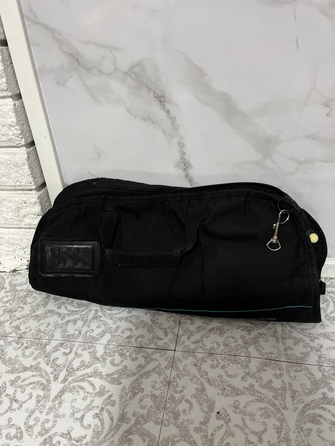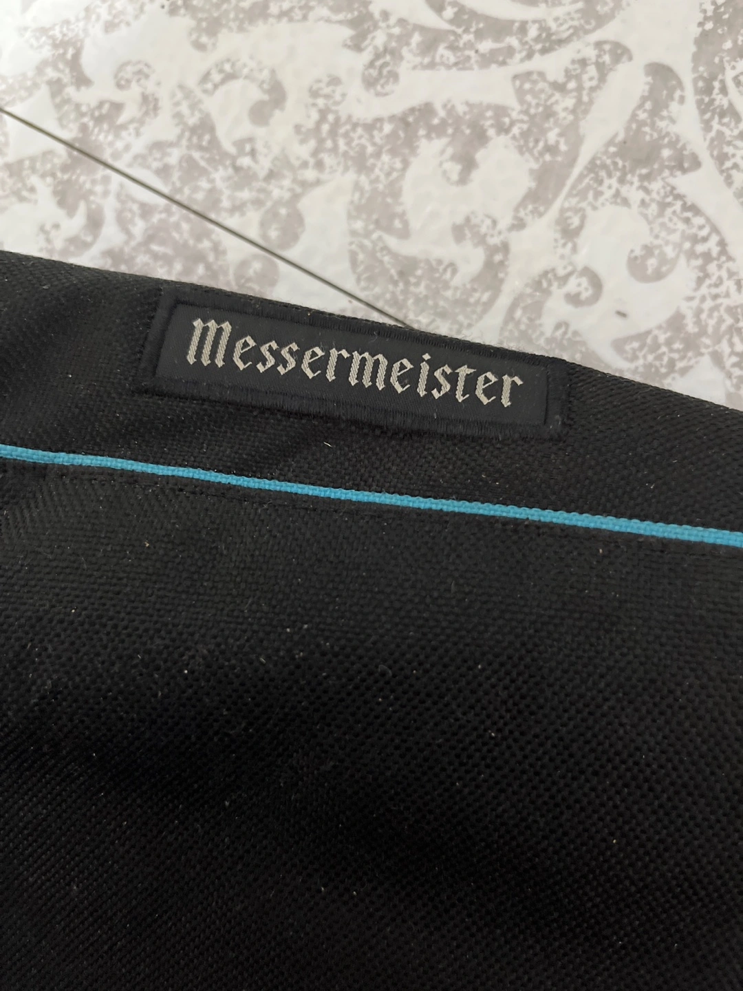 Selling a Messermeister knife bag in black. It's perfect for storing and carrying your knives safely. It features multiple compartments and a durable construction to keep your knives organized and protected.