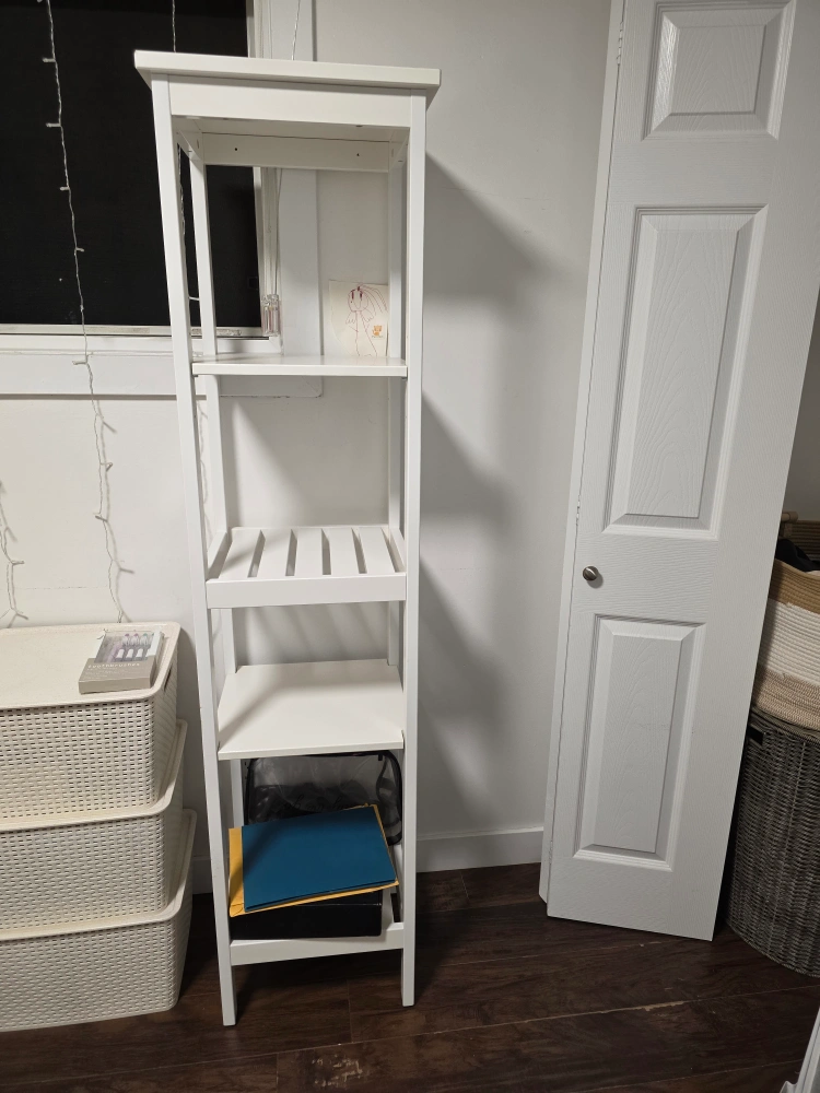 Selling a white IKEA Hemnes shelf unit! It's in great shape and ready to organize your space. Perfect for bathrooms, bedrooms, or anywhere you need a bit of extra storage. This unit offers a clean and classic look that fits well with any decor
