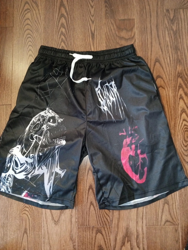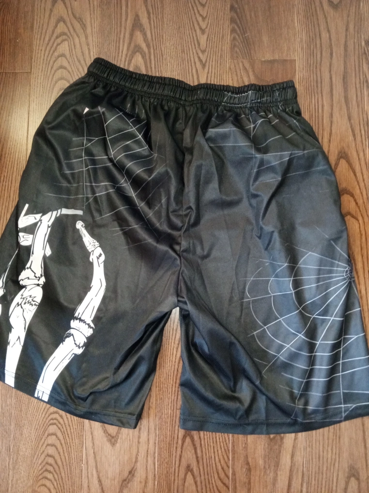 Cool graphic print shorts in black! Great for casual wear or workouts. The design features a skeleton, spiderweb, and heart Never worn Large