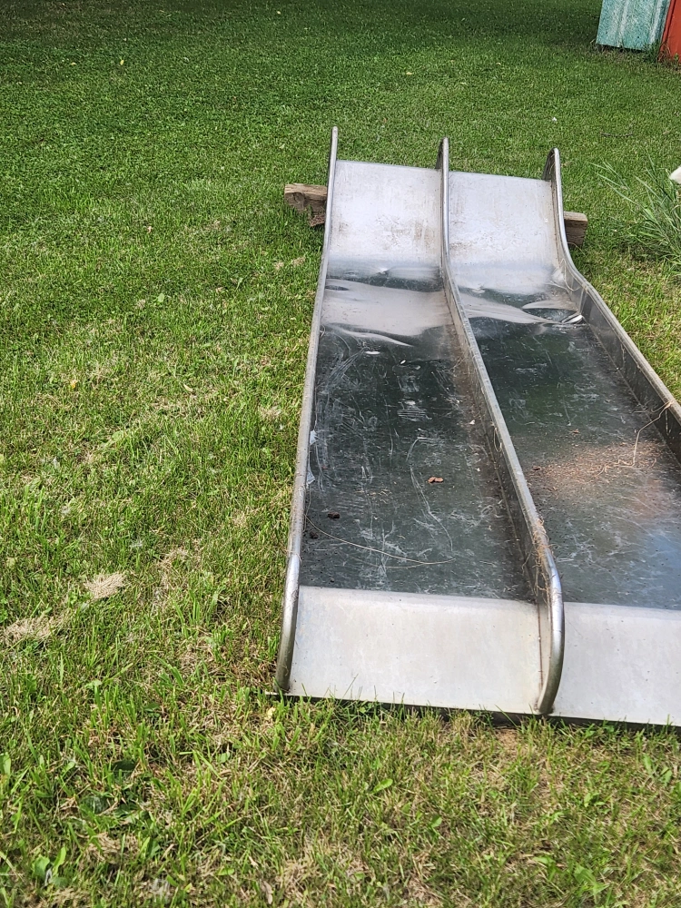 Double stainless steel playground slide. Really good quality. Taken out of playground because it has a dent on its side.