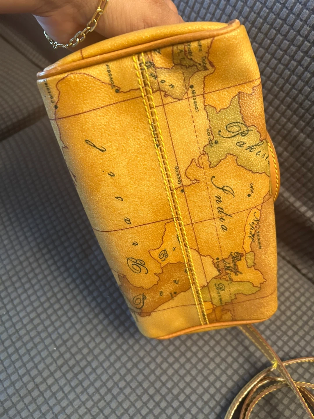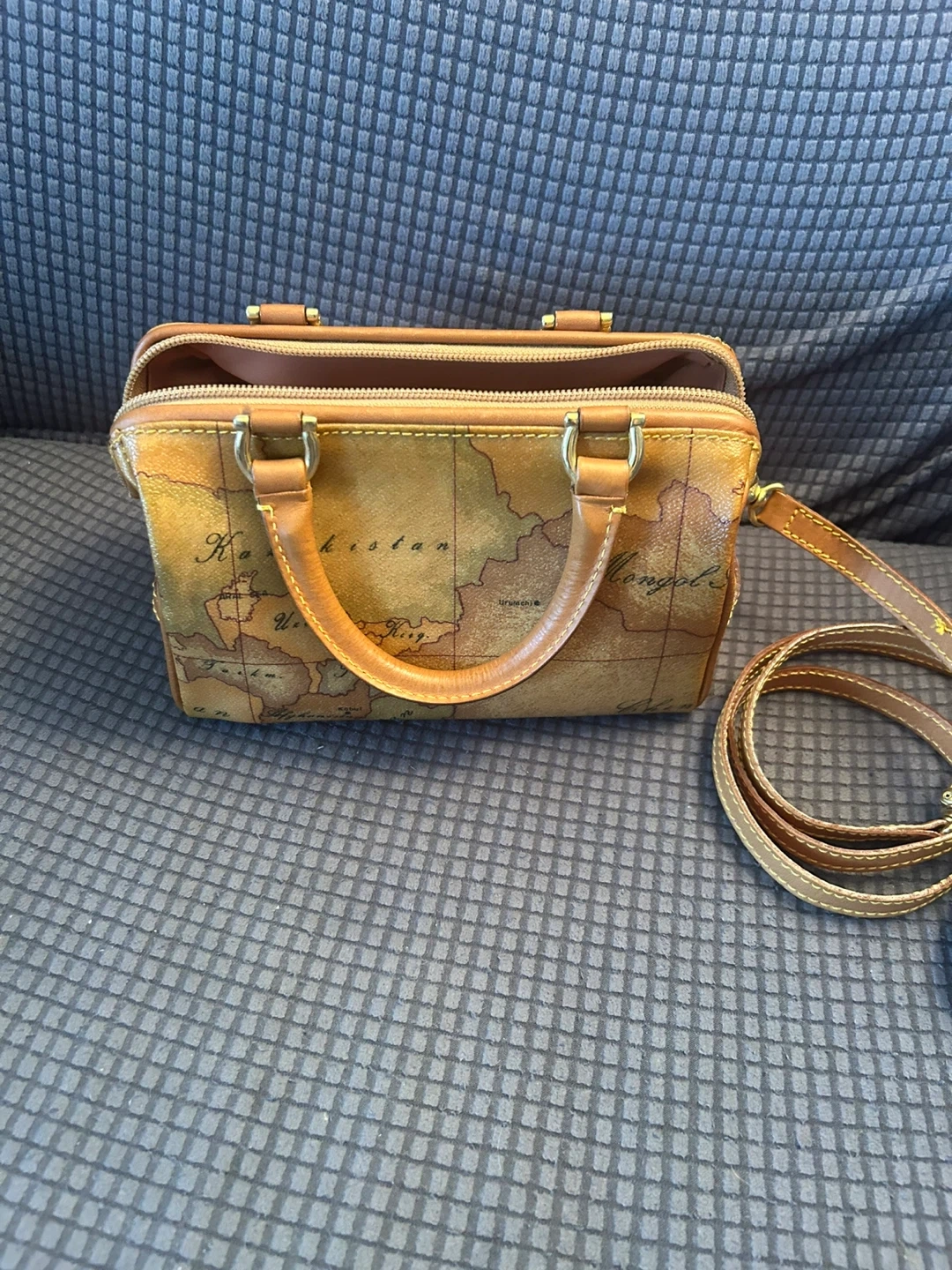 Here's a cute Alviero Martini 1A Classe handbag! It features the brand's signature map design. It's in great condition and ready for a new home