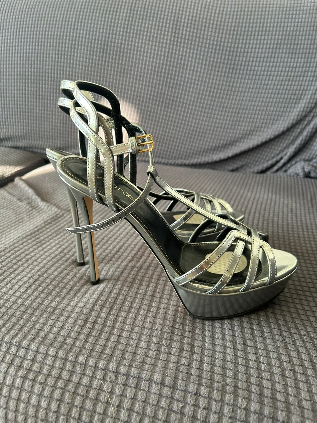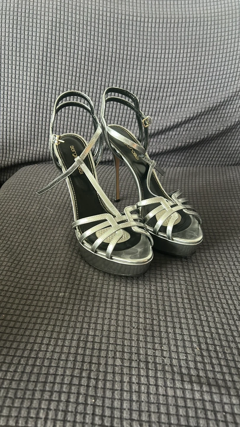 Selling a pair of Sergio Rossi heels in silver. They are a European size 38, which is approximately a US size 8. These heels are in great condition and would be perfect for a night out!