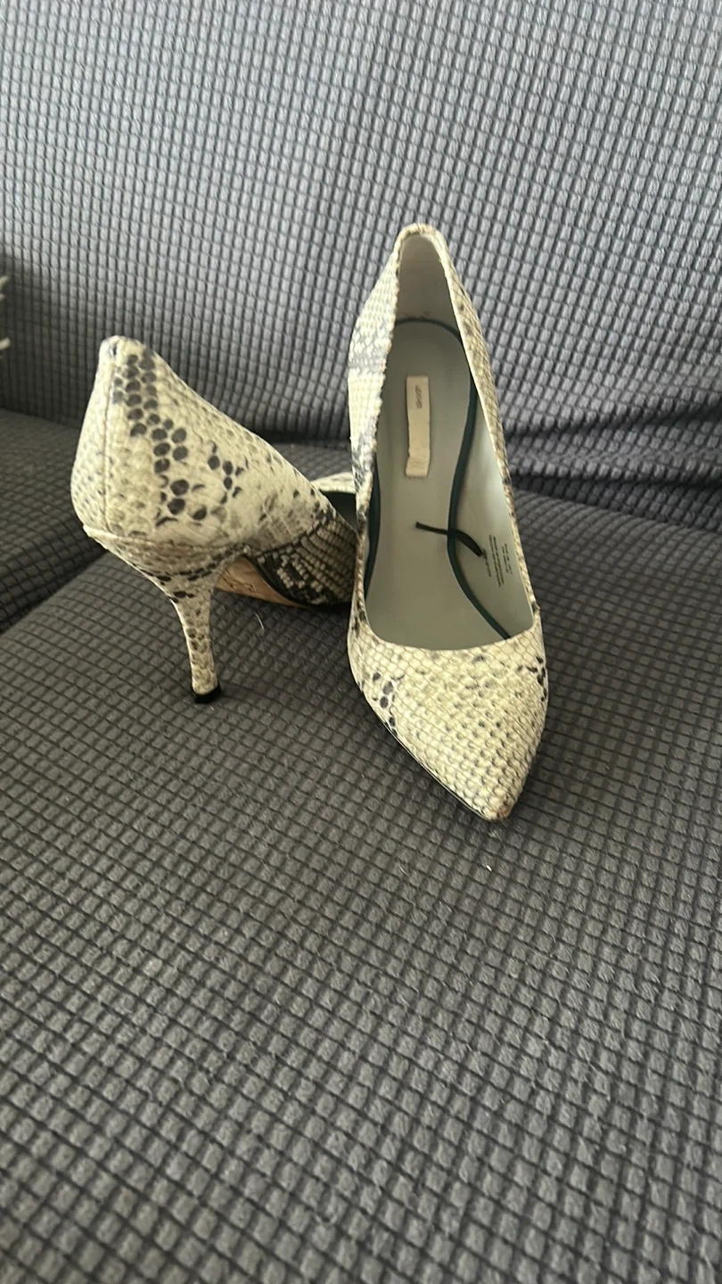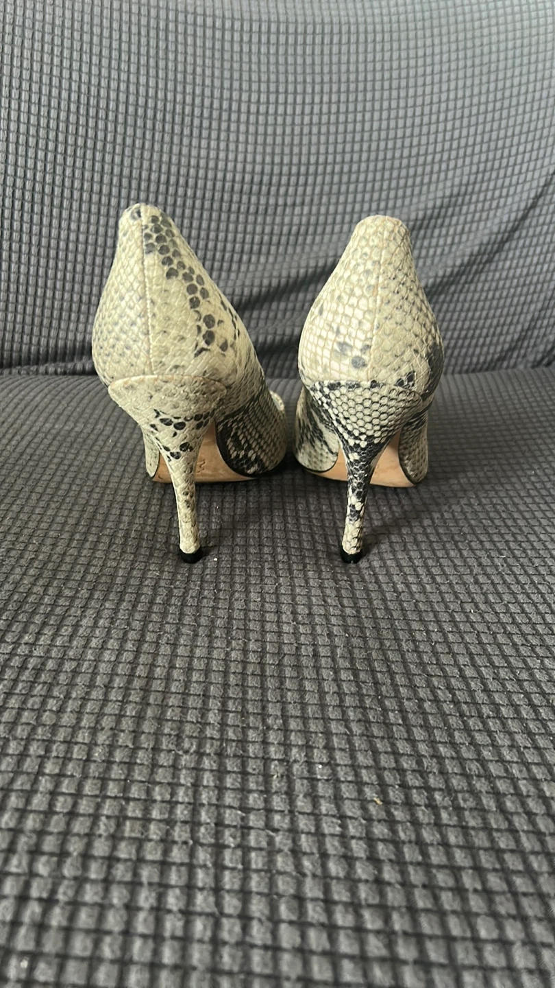 Selling a pair of H&M heels with a snakeskin print. They're a size 7 (US). There are some signs of wear, as shown in the photos, but still have lots of life left!