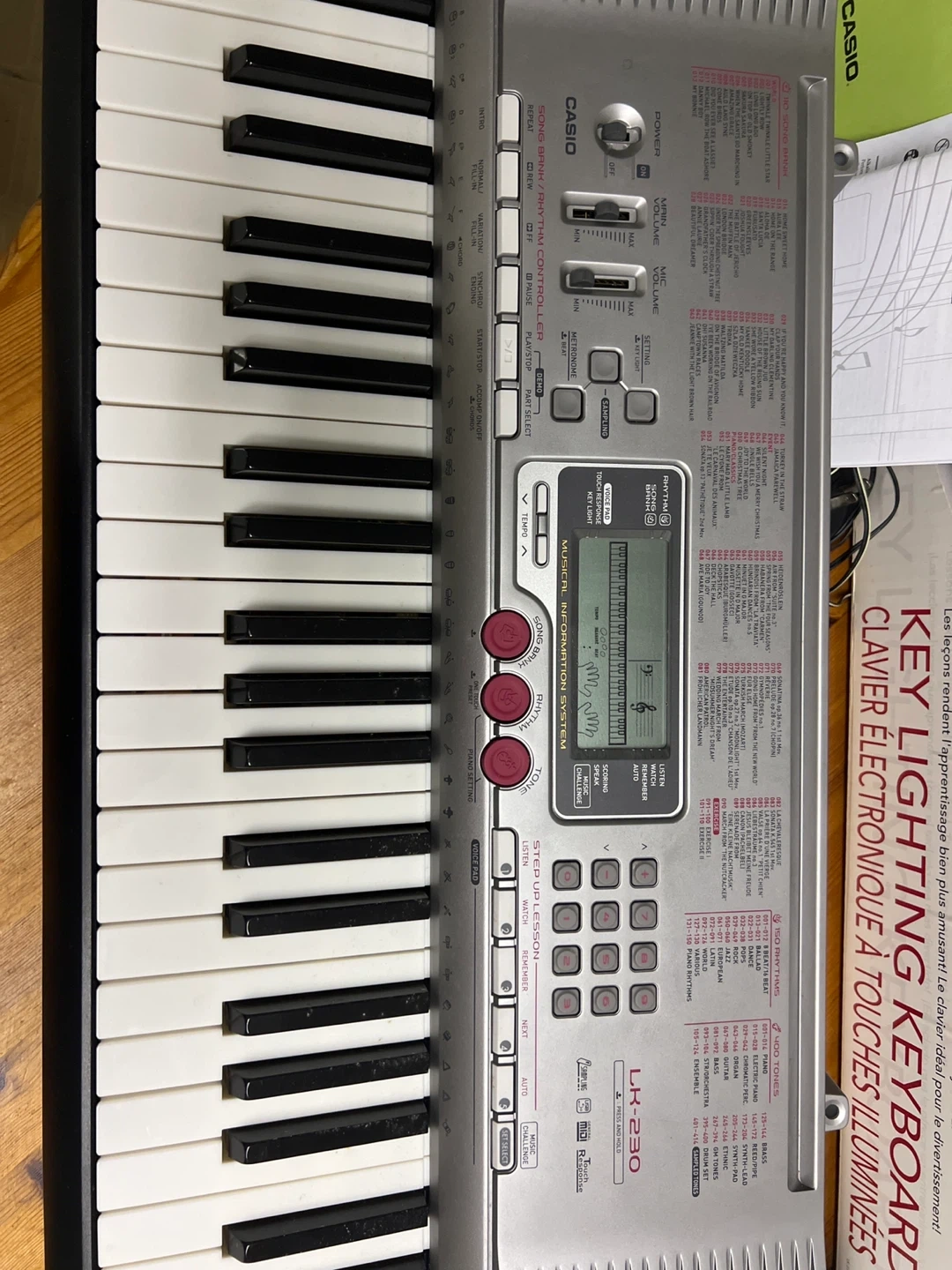 Selling a Casio LK-230 lighting keyboard. It comes with its original box, song book, and user's guide. Also included is the key board stand and a stool.