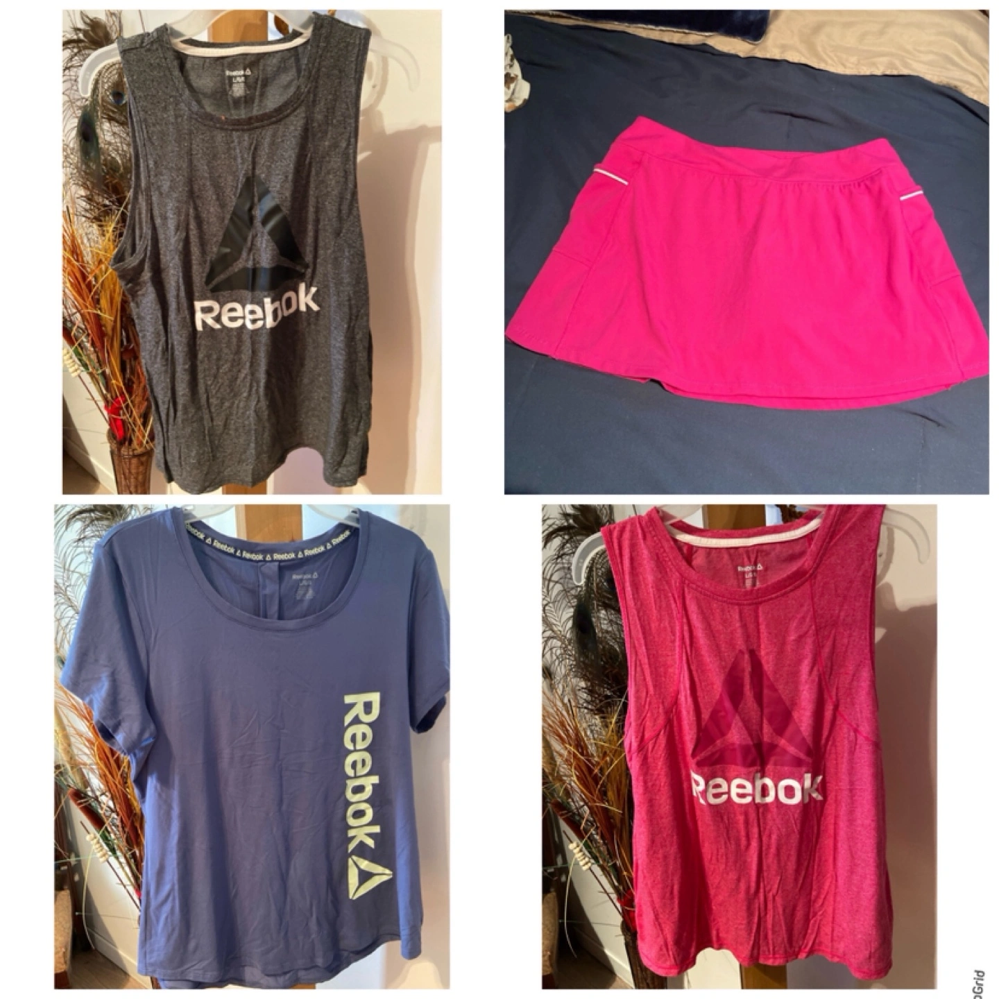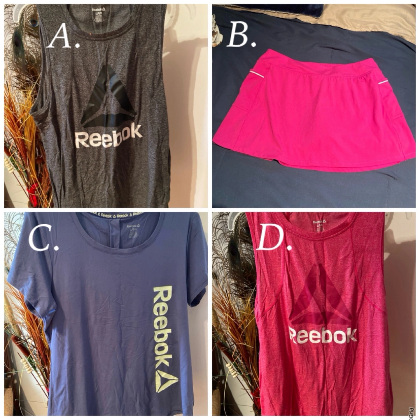 🛍️Price vary from $10 to $25 each All size Large All in good condition A. Reebok Tank Top szL This is a grey Reebok tank top in a size large, perfect for workouts or casual wear. It’s made from a comfortable blend of 50% polyester and 50% rayon. Here are the specs: * Brand: Reebok * Size: Large * Material: 50% Polyester, 50% Rayon * Colour: Grey Conditions worn once Price- $10 B. Reebok Skort szL Add a pop of colour to your workout wardrobe with this Reebok athletic skort. Perfect for tennis, running, or any fitness activity, this skirt features built-in shorts for comfort and coverage, and a vibrant pink hue that stands out. This skort has been worn, but is still in good condition and ready for your next workout. Additional Features: * Brand: Reebok * Size: Large * Colour: Pink * Built-in shorts Hardly worn Price- $25 C. ️Reebok T-Shirt szL This is a used Reebok T-shirt, perfect for workouts or casual wear, featuring a stylish design and comfortable fit, size large. Additional specifications: - Brand: Reebok - Size: Large - Colour: Blue - Material: Lightweight, breathable fabric - Style: Athletic/Casual Condition- In good condition and shape Price- $15 D. Reebok Tank Top szL This Reebok athletic tank top is perfect for workouts or casual wear, featuring a stylish pink design and the iconic Reebok logo. It’s a size large and made from a comfortable blend of 50% polyester and 50% rayon. * Brand: Reebok * Size: Large * Colour: Pink * Material: 50% Polyester, 50% Rayon In good condition and shape. Hardly worn Price- $15 Cash Payment Only & Pick up Only No Refunds / No Exchange No try ons, No trading, No holds. All purchases are Finally Sale From a Smoke Free home Fast pick up ️•Confirmed Price- A. $10 B. $25 C. $15 D. $15 Cash only Pick up only Pick up- Only Located In East York, Toronto at intersection Mortimer ave and Coxwell ave Finding the perfect top can be a real quest, but don’t worry, your search ends here! If the ad is still up, you bet your bottom dollar it’s still available!