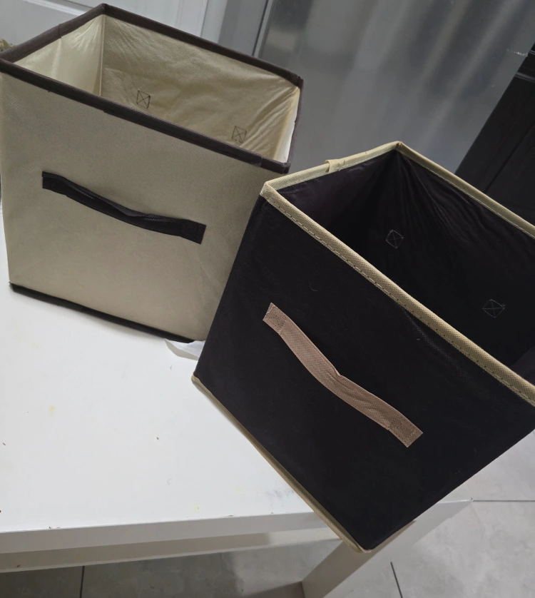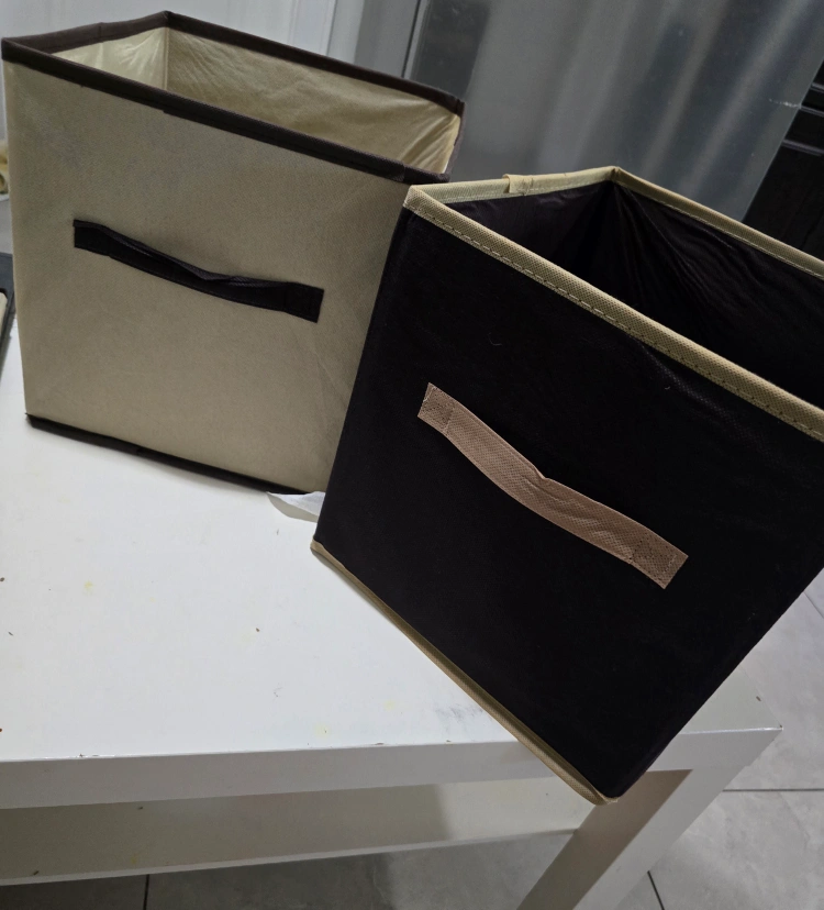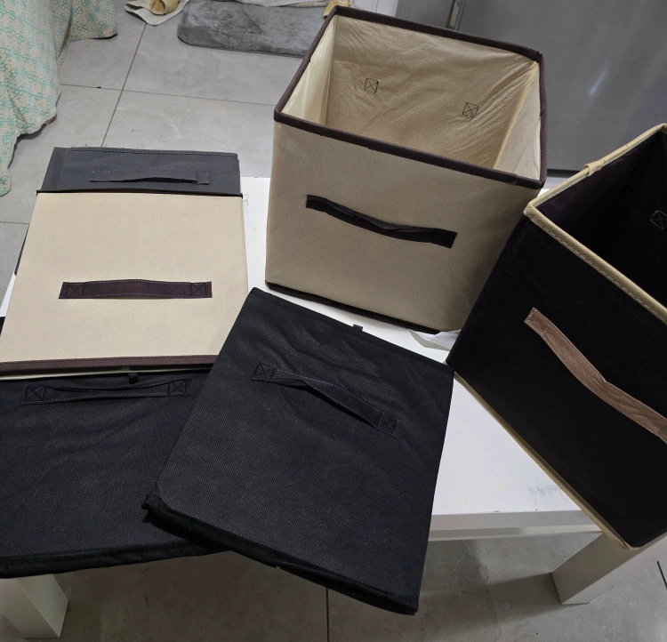 Selling a set of 6 fabric storage bins. There are different 4 colours, beige, brown, grey and black. They're great for organizing your space and keeping things tidy.