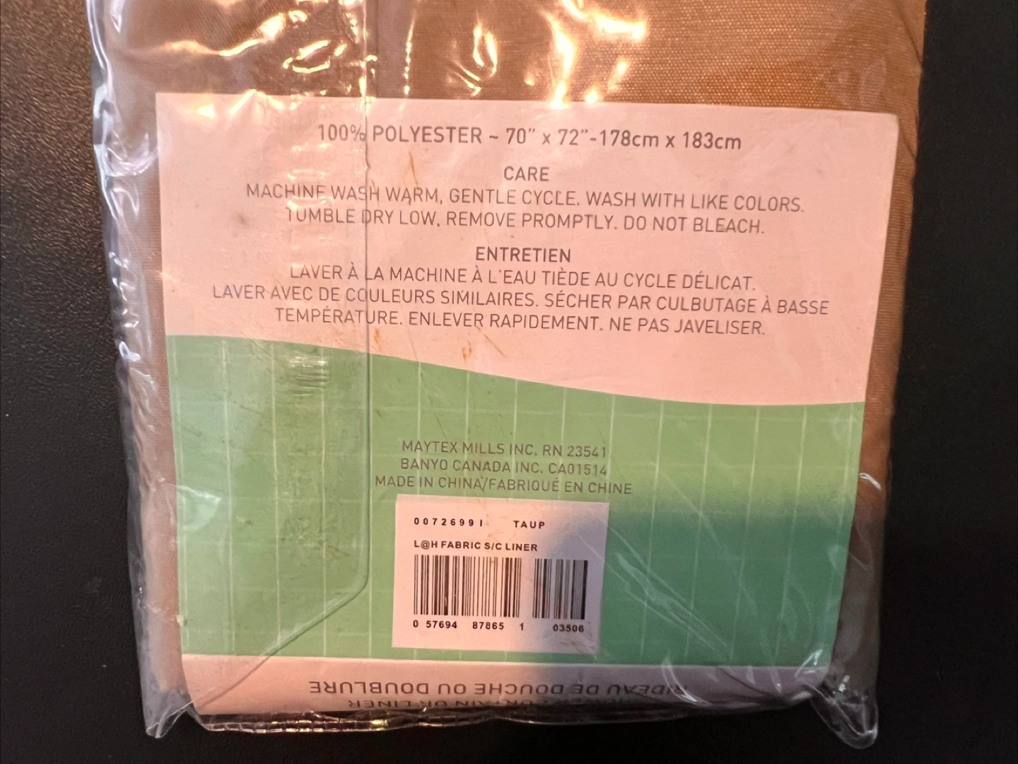 Size is about 70" x 72” or 178cm x 183cm Fabric curtain/liner with a weighted hem Water repellent Can be machine washed and dried Pick up or meet up available Near 128 and 64 avenue Cash only