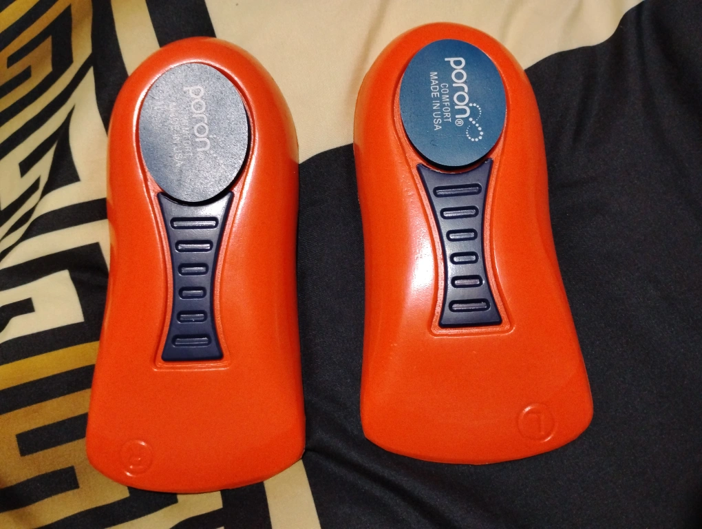 These are brand new Poron Orthopedic Comfort Insoles for men, size large! They are orange and provide orthopaedic support for everyday comfort. Made in the USA