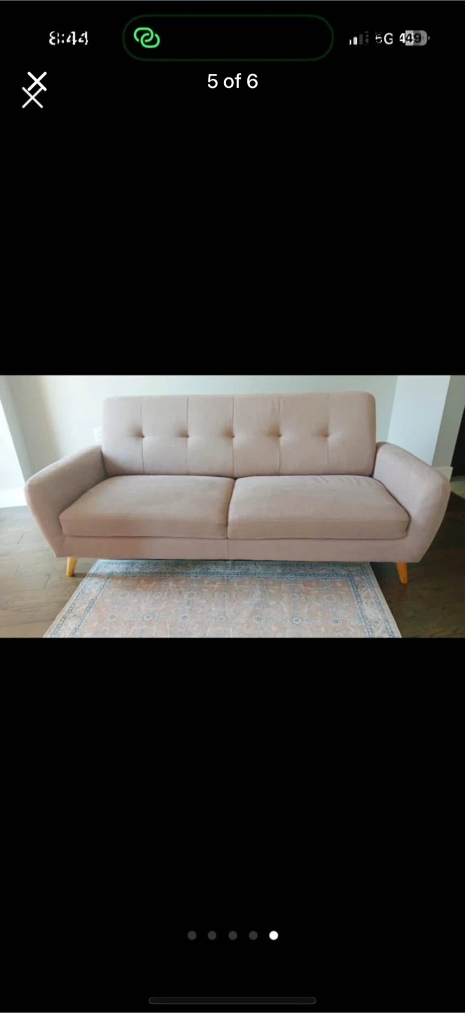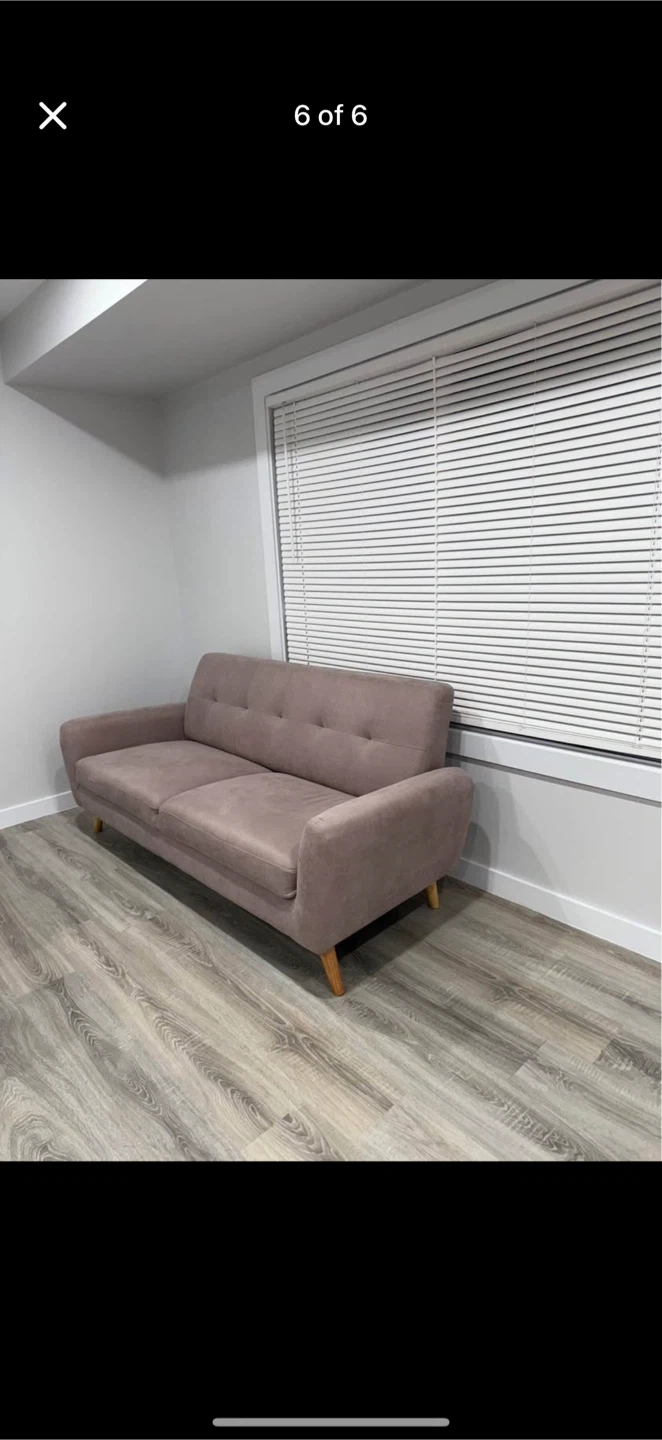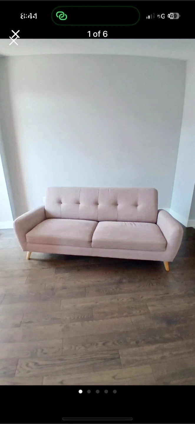 Selling a dusty pink sofa in great condition! It's a lovely piece that would look great in any living room or den. The colour is a soft, muted pink that's easy to match with other decor. It's been well taken care of and is ready for a new home