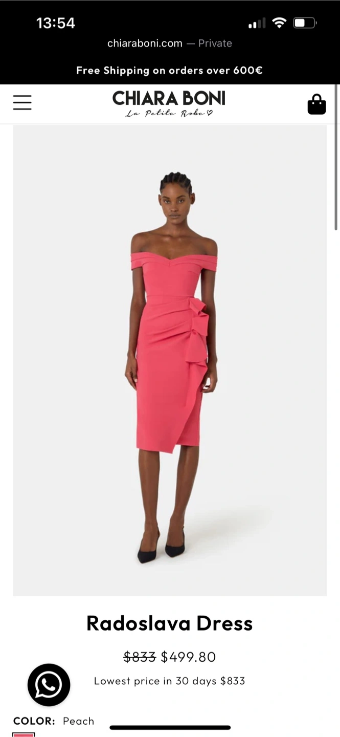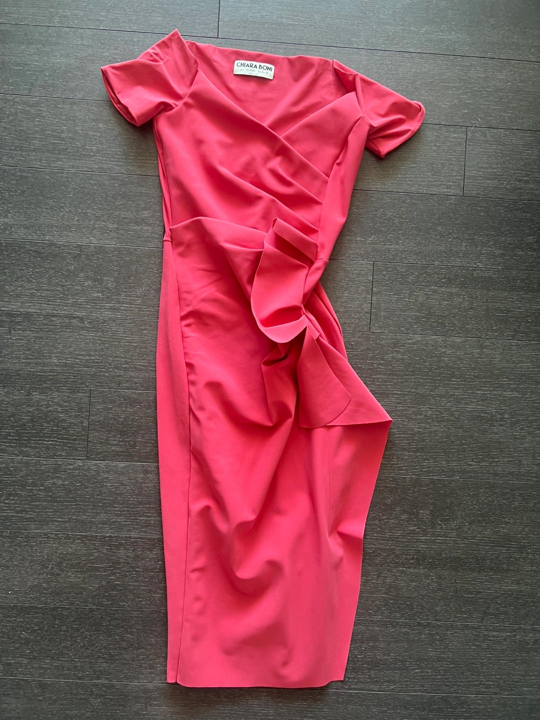 Here's a beautiful Chiara Boni Radoslava dress in a lovely peach colour! It's in great condition and ready for a new home. Size 38. Fabric is stretchy so it fits small-medium. Originally, it retailed for $833, so this is a steal!