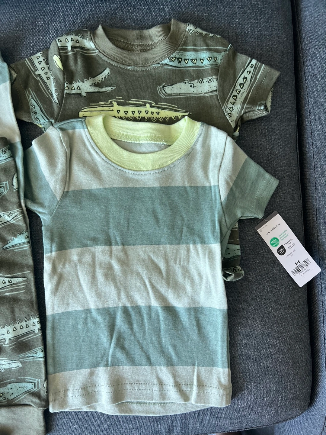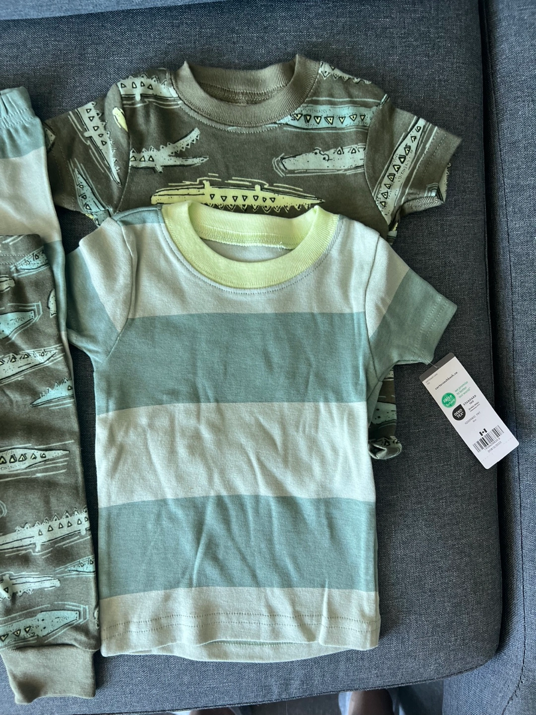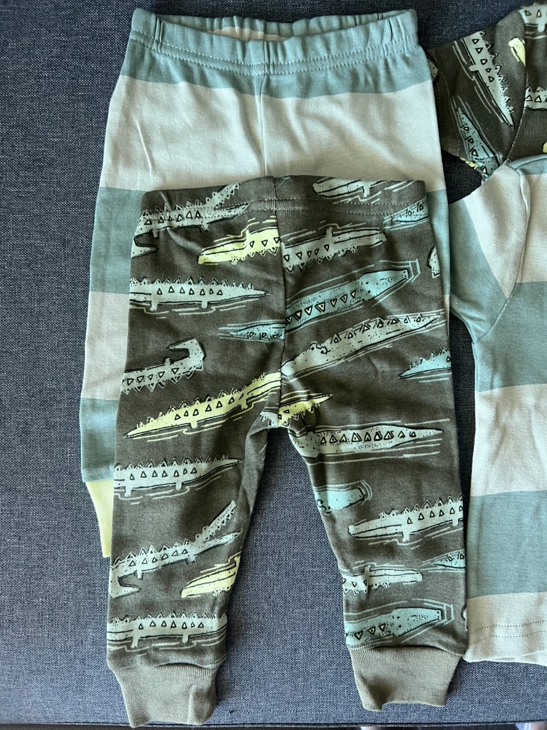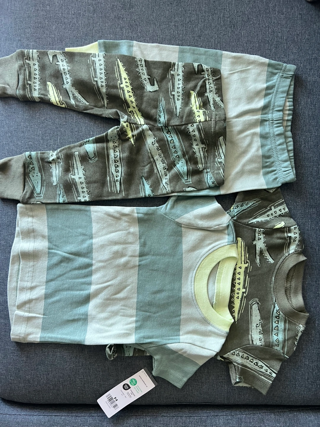 Here's a cute little outfit set from George! It includes a striped t-shirt and a t-shirt and pants with an alligator print. Perfect for your little one, size 12 months