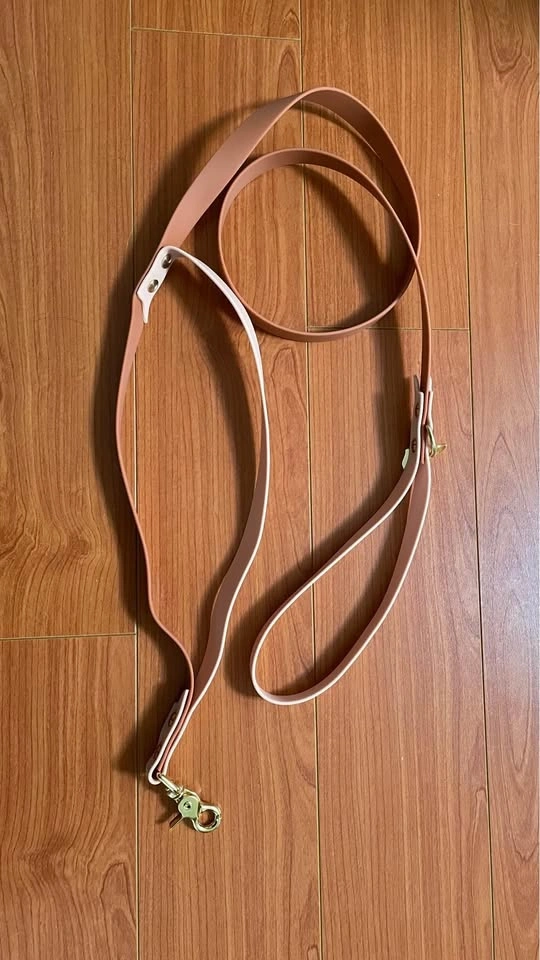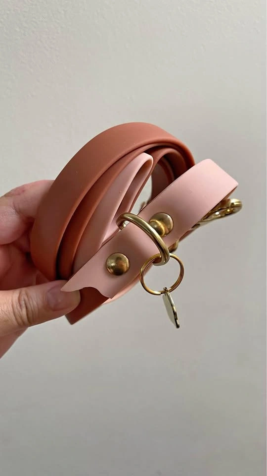 Blush pink and terracotta brown leash with traffic handle and brass hardware Length: 5ft Width: 3/4”