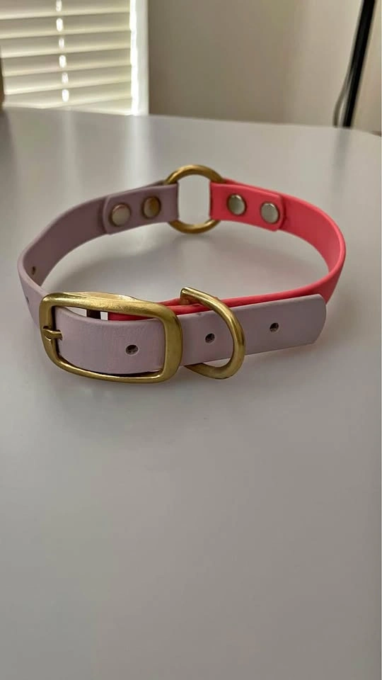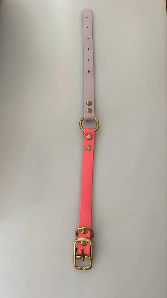 Brigs S and P coral and lavender biothane collar with brass hardware size 13-18 inches 3/4 inch wide