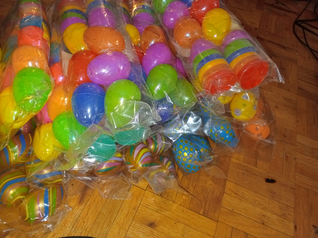 I have a bunch of Easter egg fillers, all sealed in their original packaging. There are a variety of colours and designs. Also included is a cute Bluey bucket, perfect for collecting all those eggs! As well as tons of other brand new in packaging Easter items 100+ items hand paint Easter eggs Easter basket filler Easter baskets Easter eggs east dye dippers +more
