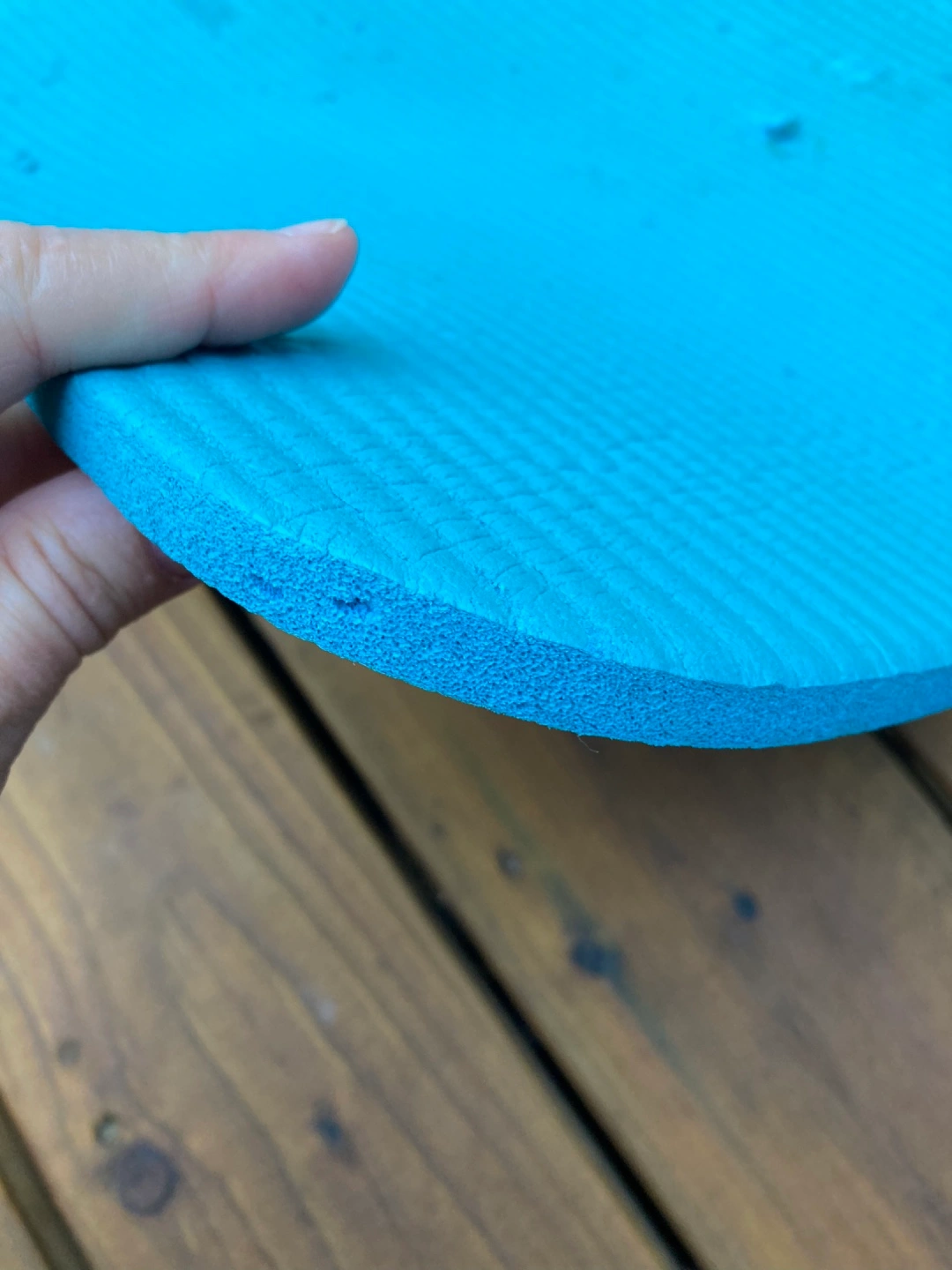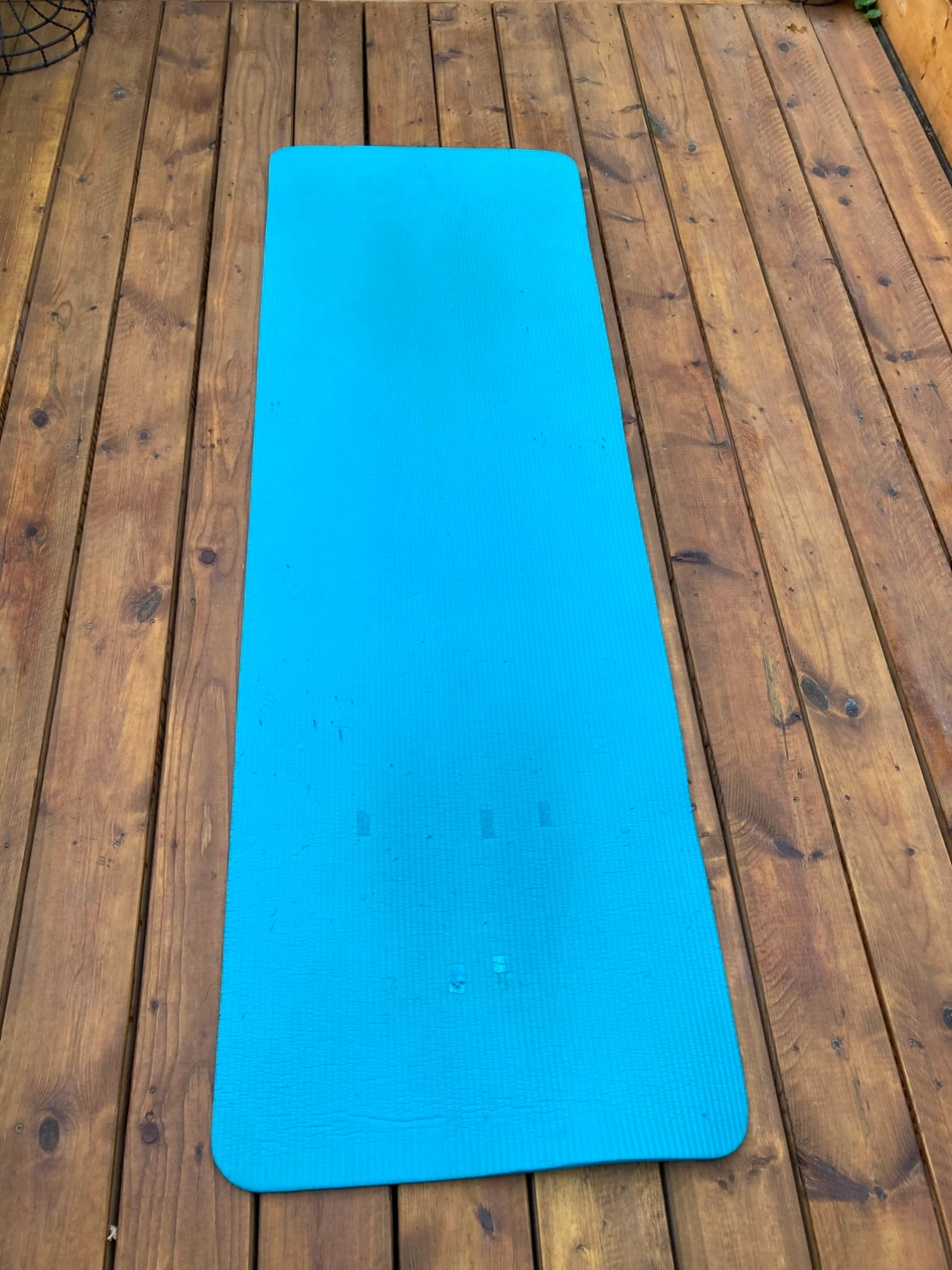 Here's a blue roll mat, perfect for either sleeping on while camping or for your at-home workouts or stretching sessions! It's in reasonable condition and ready for a new home. Lightweight and easy to roll up for storage.