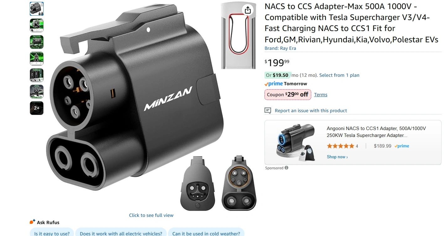 NACS to CCS Adapter-Max 500A 1000V -Compatible with Tesla Supercharger V3/V4-Fast Charging NACS to CCS1 Fit for Ford,GM,Rivian,Hyundai,Kia,Volvo,Polestar EVs, Brand New in the Box/Sealed Sells for $200+tax on Amazon https://www.amazon.ca/dp/B0FHKL8K92