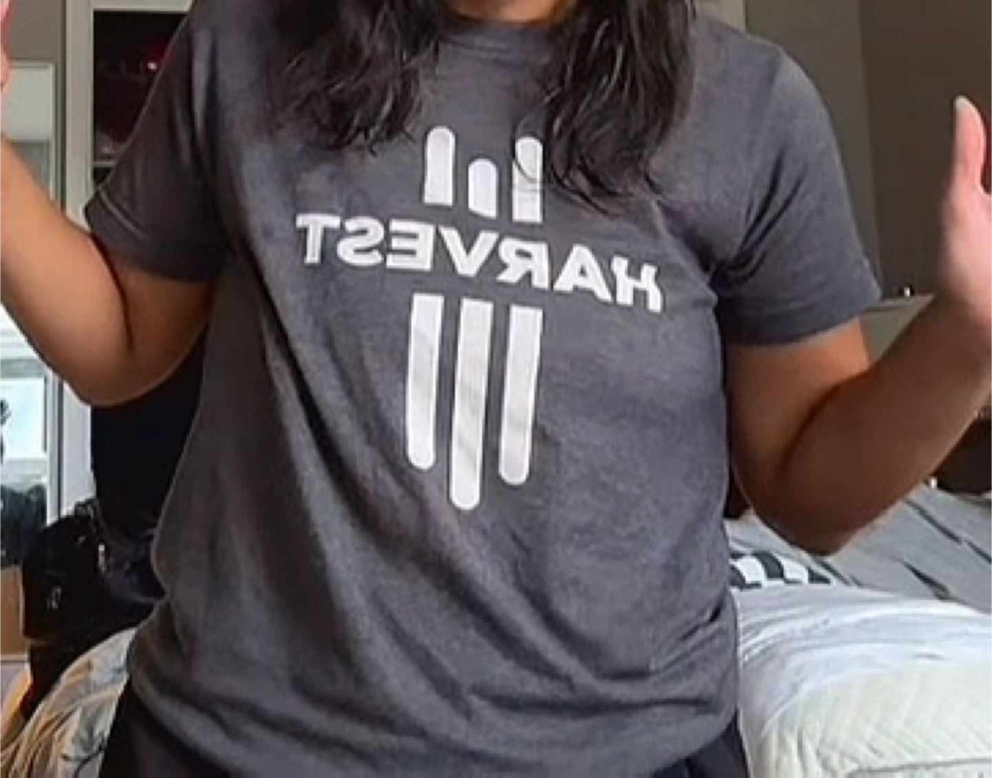 Selling a grey Harvest t-shirt. It has a unique design on the front. Perfect for casual wear!