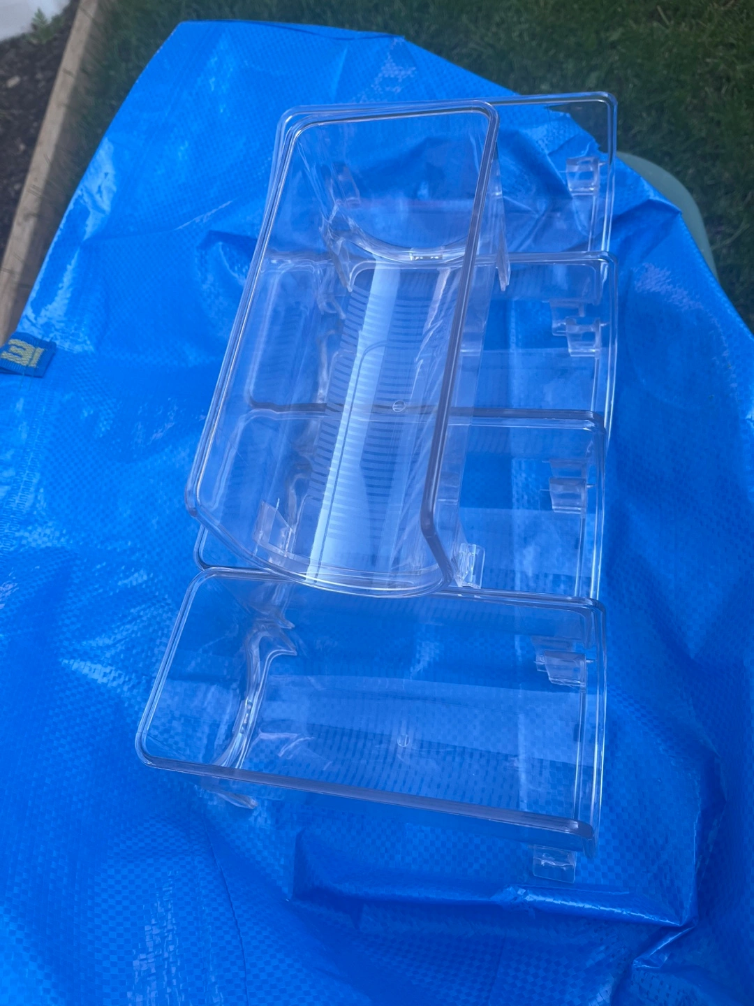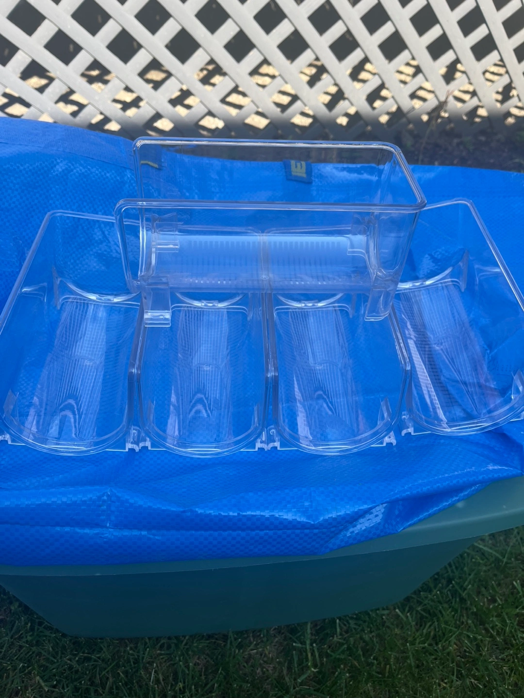 Selling a set of clear plastic fridge drawer organizers. They're in great shape and ready to help you keep your fridge tidy. The dimensions are approximately 8 inches wide, 6 inches high, and 15 inches long. Perfect for maximizing space and keeping things visible! 6 of them.