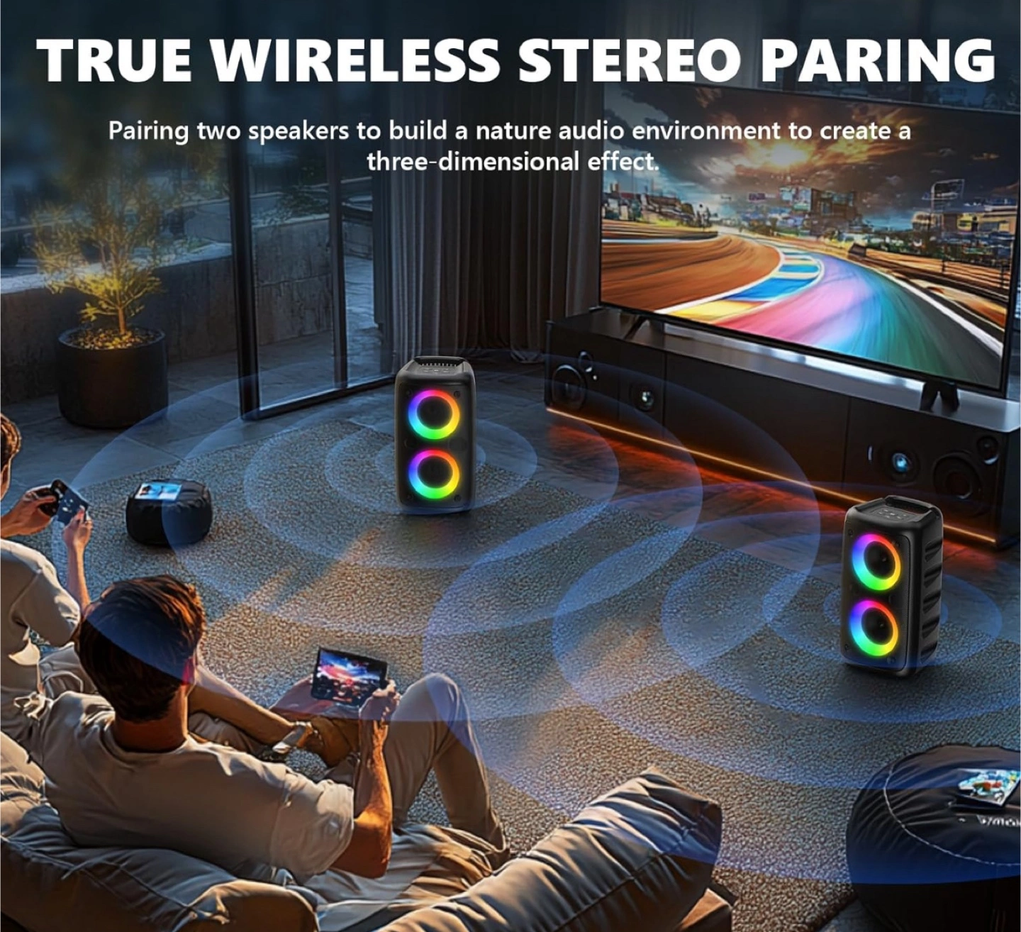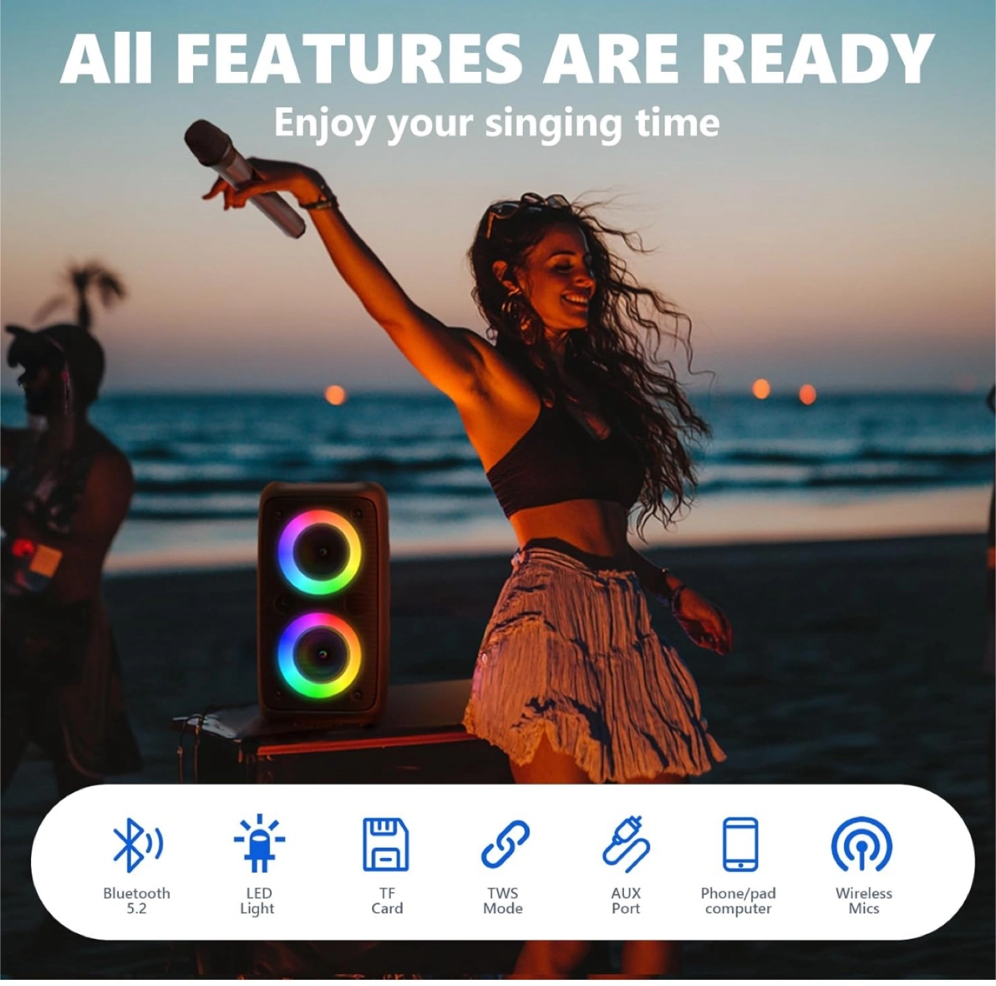 Karaoke Machine, Portable Bluetooth Speaker, PA Speaker with 2 Wireless Karaoke Microphones, Karaoke Machine for Adults Kids with Upgraded Subwoofer, Support TWS/TF/USB/AUX for Home Party Outdoor, new- open box One mic is working sometimes not