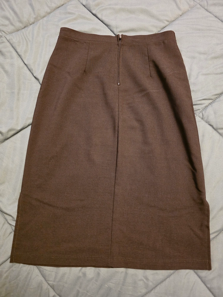 Selling a brown skirt from Lemonade. It's a size M (23 inches length), slit on each side and made of 95% polyester and 5% spandex. Perfect for any occasion!