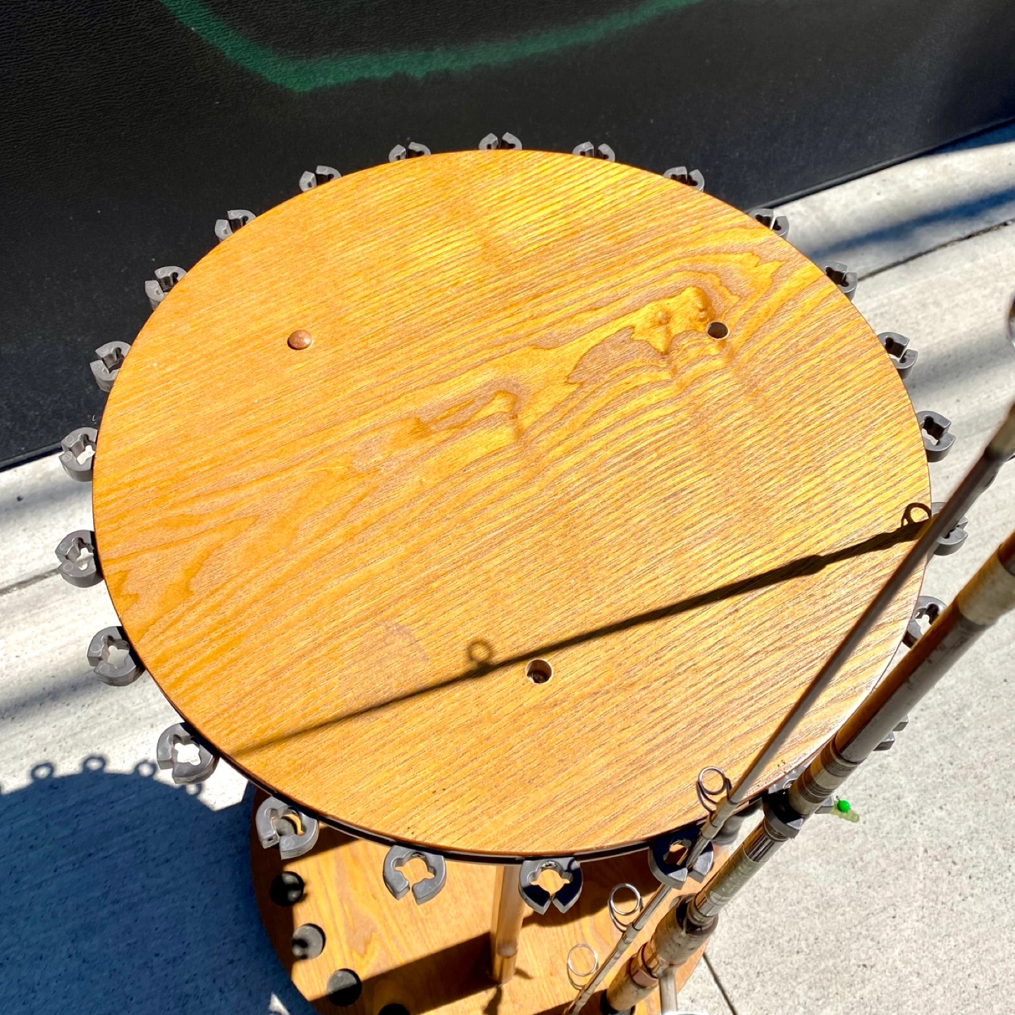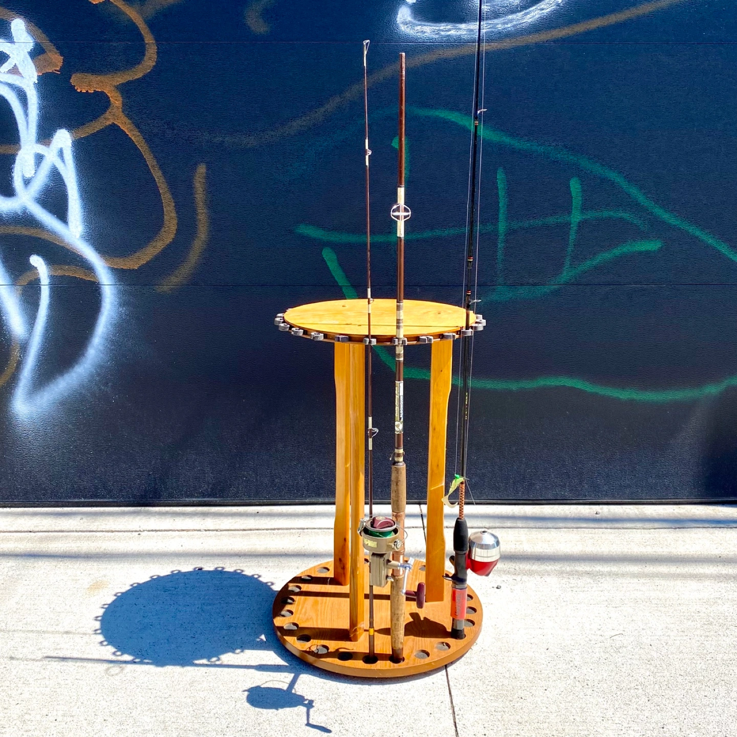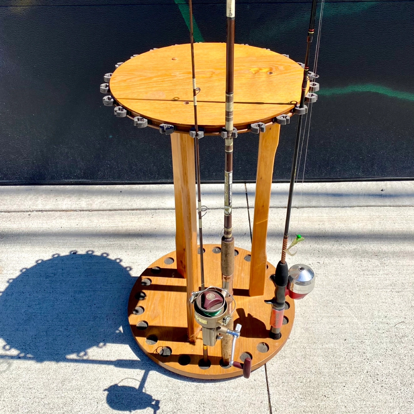 Rotating wooden fishing rod retail display or storage rack. Holds 24 rods. ~17.5โd x 26โh ๐ฅ$45 - rods sold separately โ Yes, it is available ๐ Pick up near Bloor & Ossington ๐ Downtown delivery extra ๐ฆ Ask about shipping