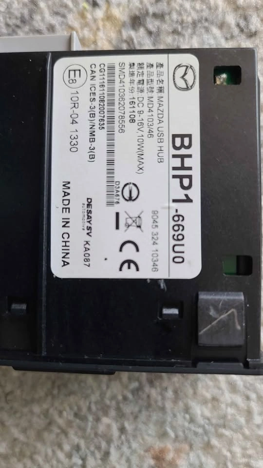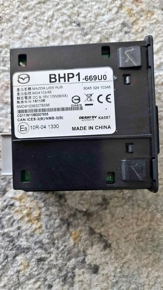 Selling a genuine Mazda USB Hub, perfect for replacing a faulty unit or upgrading your current setup. Product Details: Product Name: MAZDA USB HUB Model Number: MD4103/46 Power Input: DC 9-16V, 10W (Max) Manufacture Date: November 8, 2016 Part Number: BHP1-669U0 Certification: CE, CAN ICES-3(B)/NMB-3(B), 10R-04 1330 Brand: DESAYSV Made in China Compatible with select Mazda vehicles (please verify with your model/year) In excellent condition. Available for pickup.
