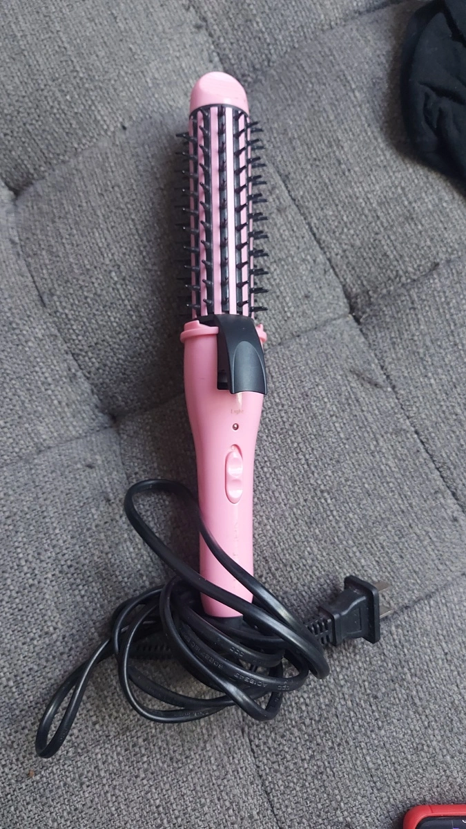 Selling a pink hair curling brush! It's in great condition and ready to help you style your hair. It has a light setting and is easy to use. Perfect for creating curls or adding volume to your hair