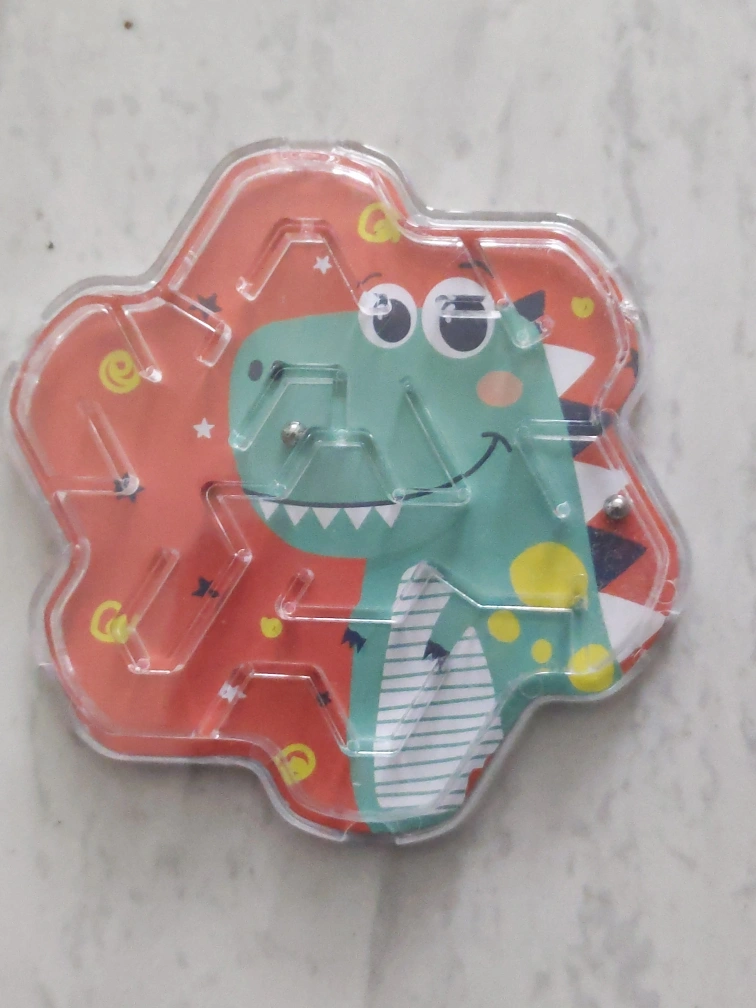 Fun dinosaur maze puzzle toy! Great for keeping little ones entertained. Features a cute dinosaur design and small metal balls to navigate through the maze.