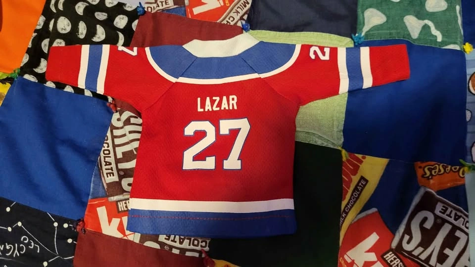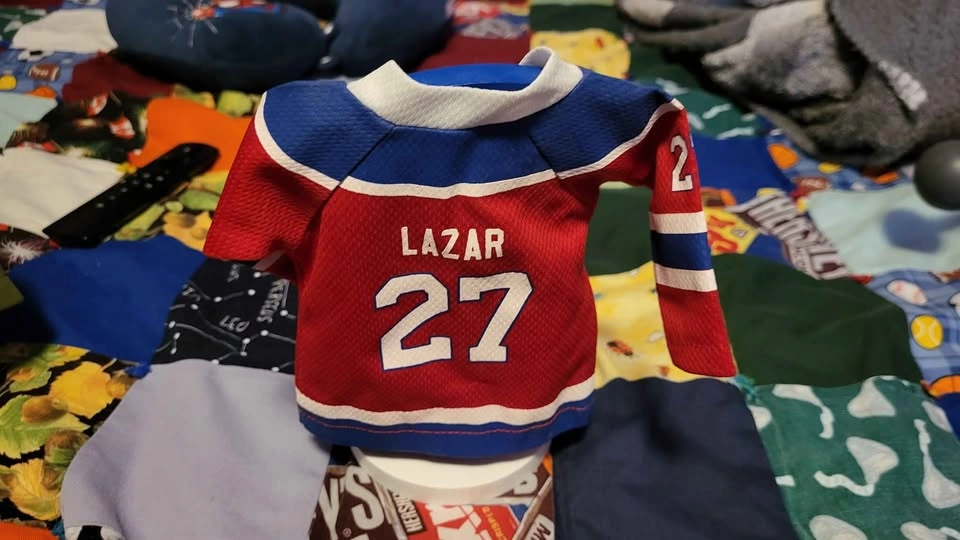A mini jersey about the size of 1 and a half pop cans or Curtis Lazars jersey. Dont know when or where I got it but its up for sale. $20 obo or for a novelty item of my interest