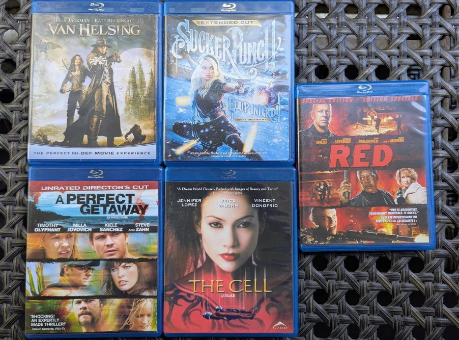 Selling a collection of Blu-ray movies, including: - Van Helsing - Sucker Punch (Extended Cut) - RED (Special Edition) - A Perfect Getaway (Unrated Director's Cut) - The Cell $3 each $12 for all