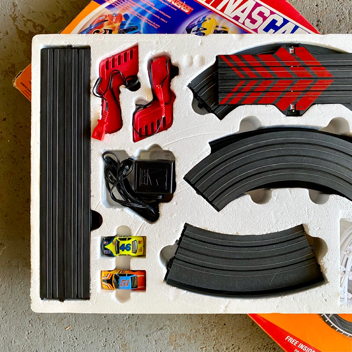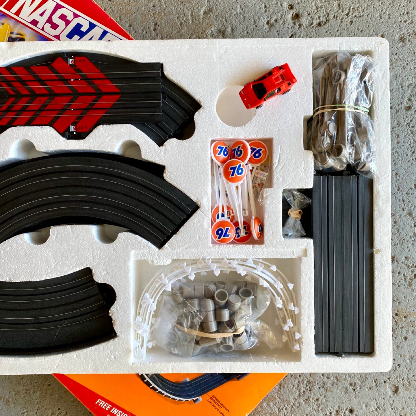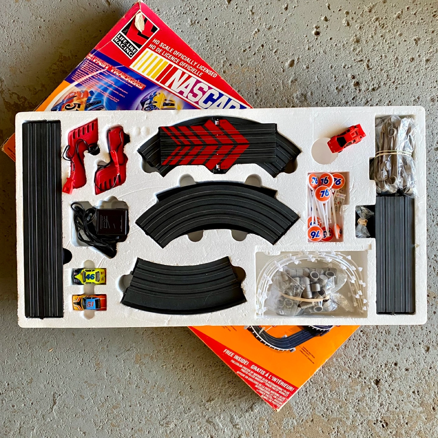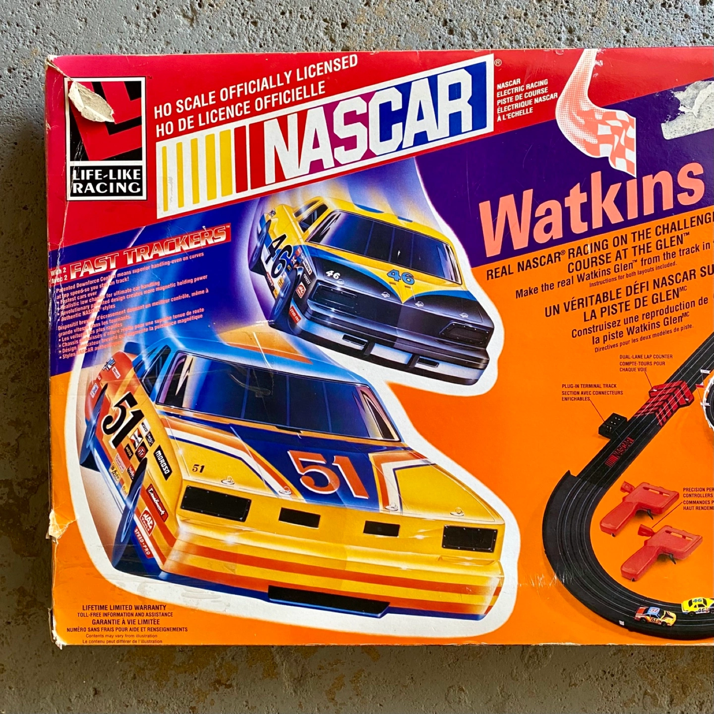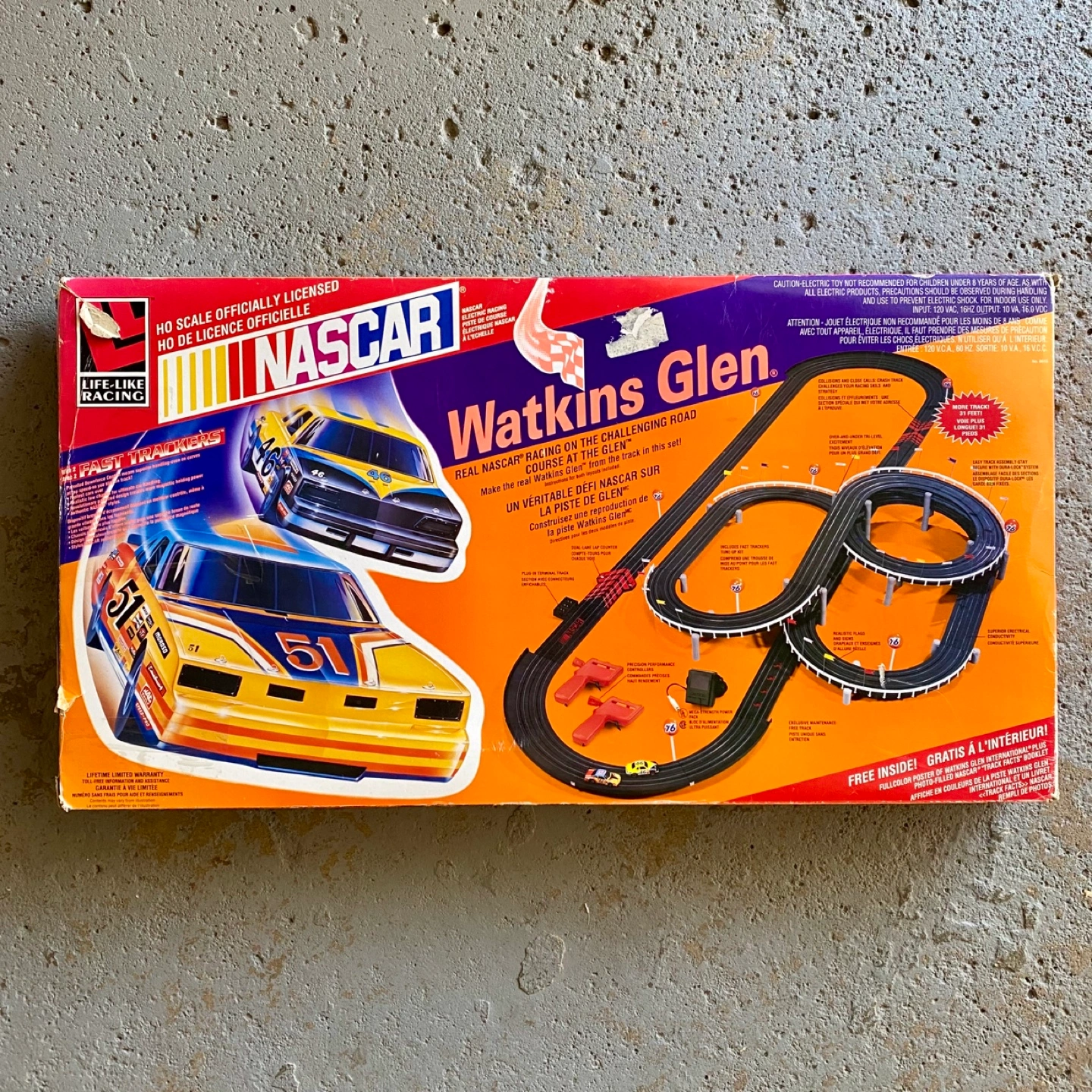 Complete and working vintage 1993 Life-Like Racing Watkins Glen HO scale NASCAR electric slot car racing set in original box. Includes extra red Fast Tracker Lamborghini slot car. 31 ft of track π₯$100 β Yes, it is available π Pick up near Bloor & Ossington π Downtown delivery extra π¦ Ask about shipping