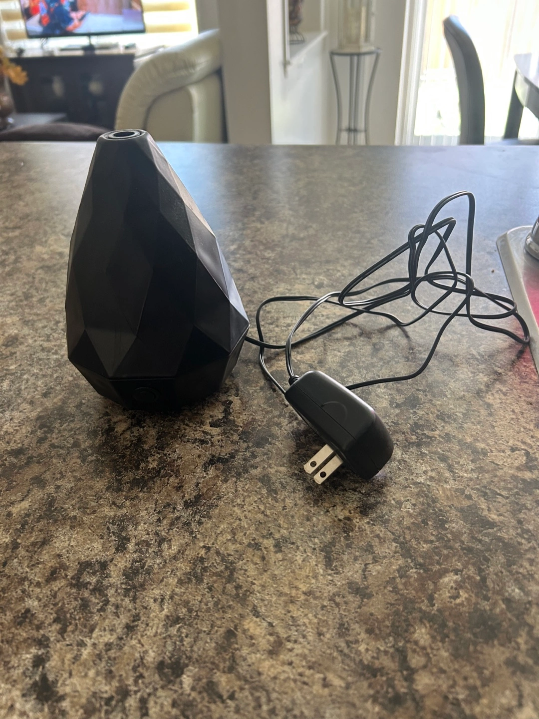 Selling a stylish black diffuser with a unique diamond-shaped design. It comes with its adapter, so it's ready to use right away! It would look great in any room.