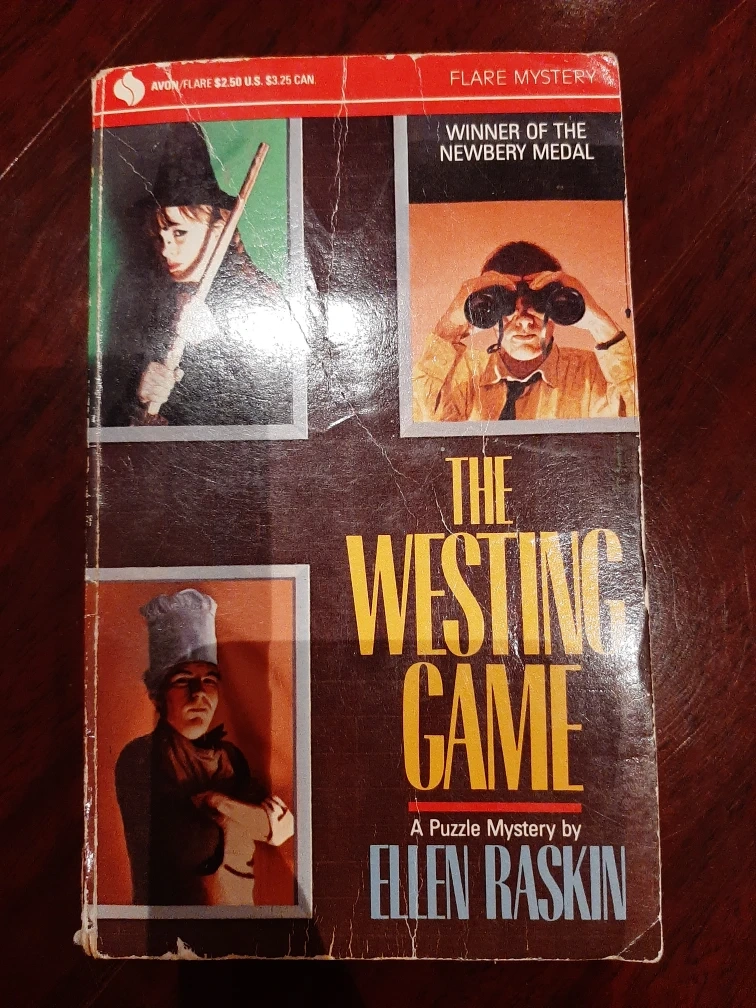 FREE "The Westing Game" by Ellen Raskin. This is an Avon Flare edition, a puzzle mystery and winner of the Newbery Medal. A great read for mystery lovers! Pick up Scarborough.