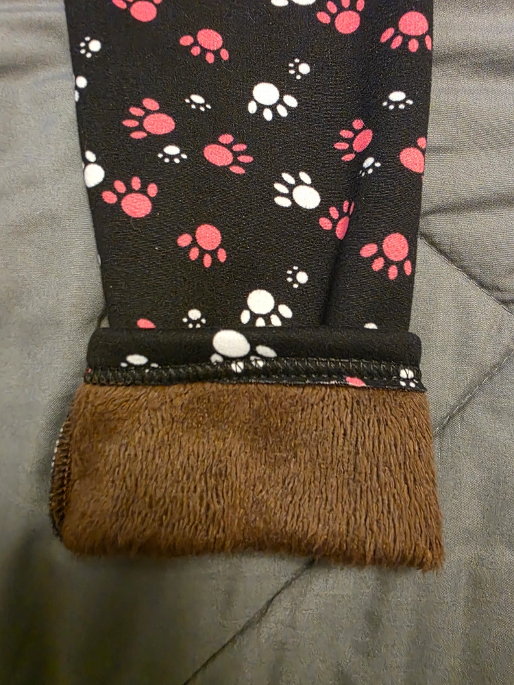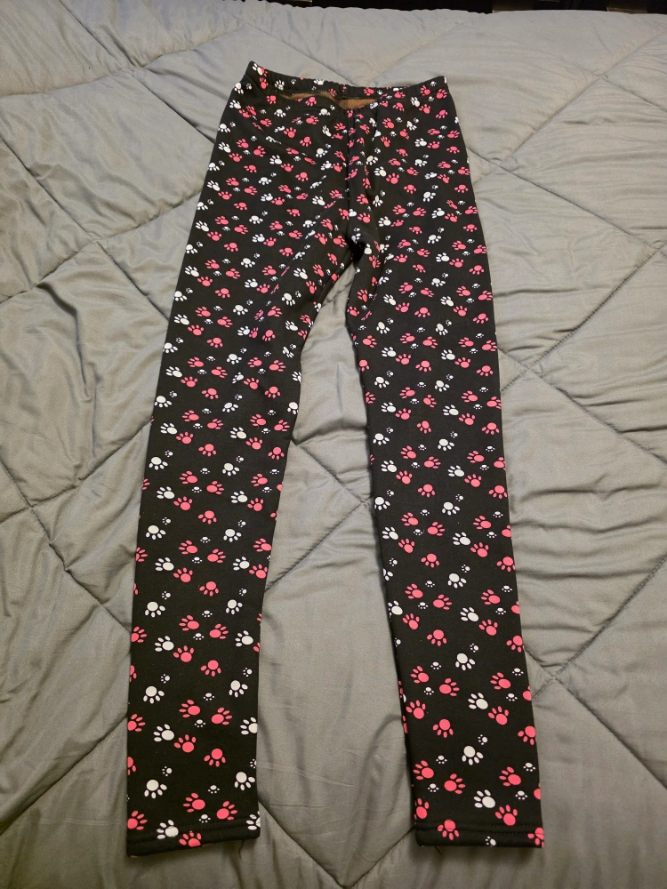 Selling a pair of Cozy leggings in size M/L! They feature a cute black paw print design and a warm, cozy soft faux fur-lining. Perfect for chilly days!