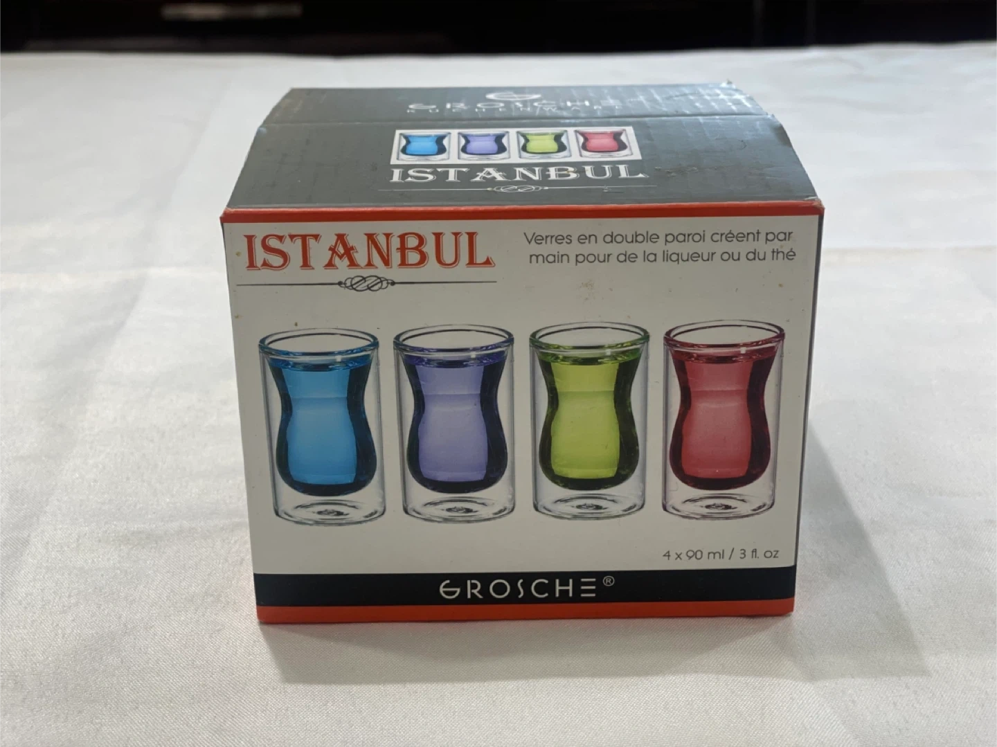 . Selling a set of Grosche Istanbul double wall tea glasses! The set includes 4 glasses, each with a 90 ml / 3 fl oz capacity. They're still in their original box, ready for a new home. $15 . Water filters for pet fountain. Details in box. $10 . Pimple remover with attachments and charger. $35 All items mentioned here are new and come with original boxes. Great stuff for gifts or kmas stockings.