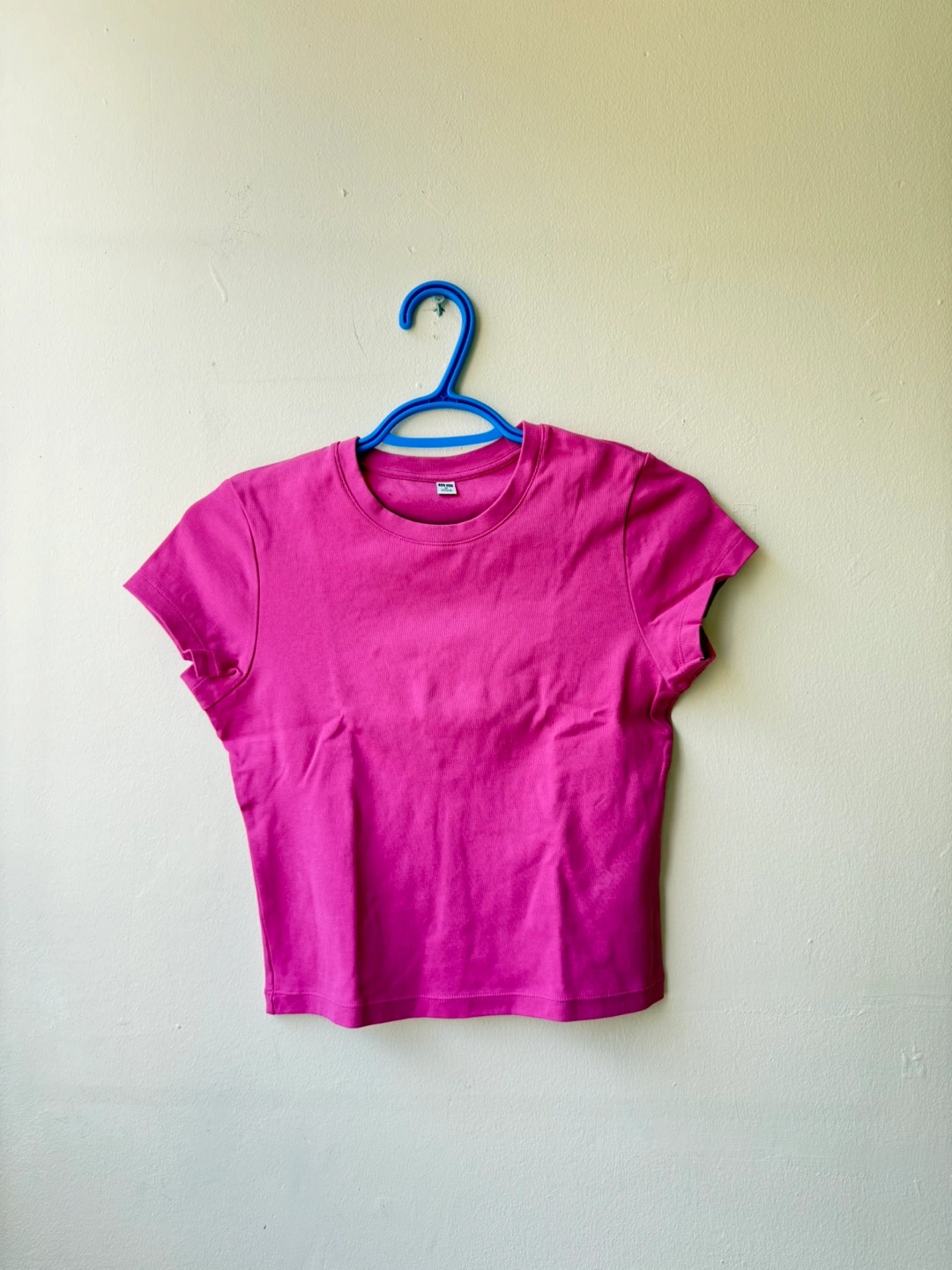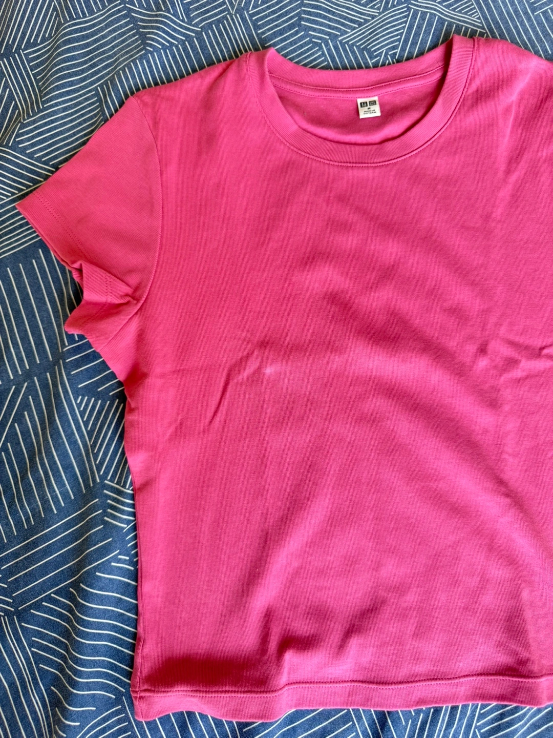 a cute Uniqlo pink t-shirt in size medium! It's NEW Perfect for everyday wear or layering