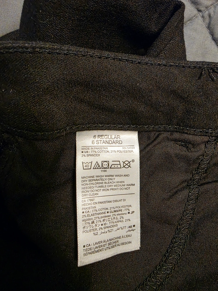 Selling a pair of Old Navy Rockstar mid-rise jeans in black. They are a size 6 regular. The material is 77% cotton, 21% polyester, and 2% spandex