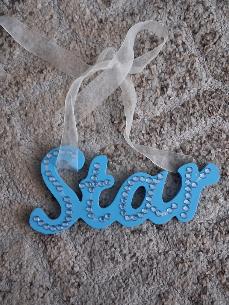 A cute blue star ornament with sparkly rhinestones! Perfect for adding a touch of whimsy to any room or holiday decor