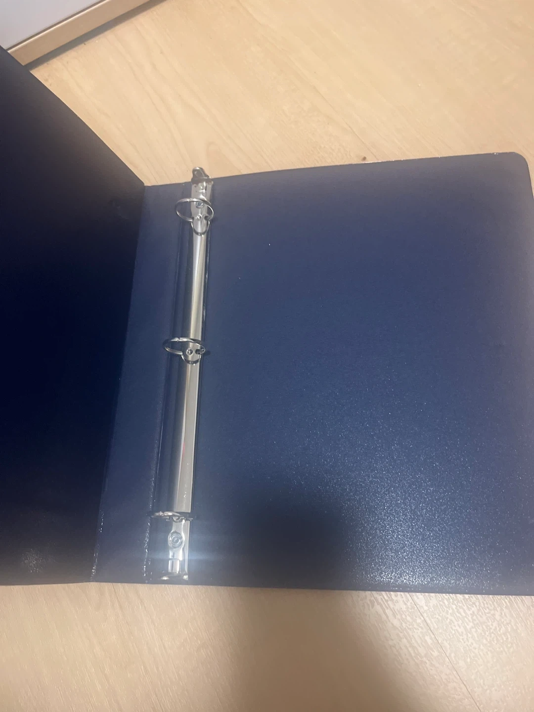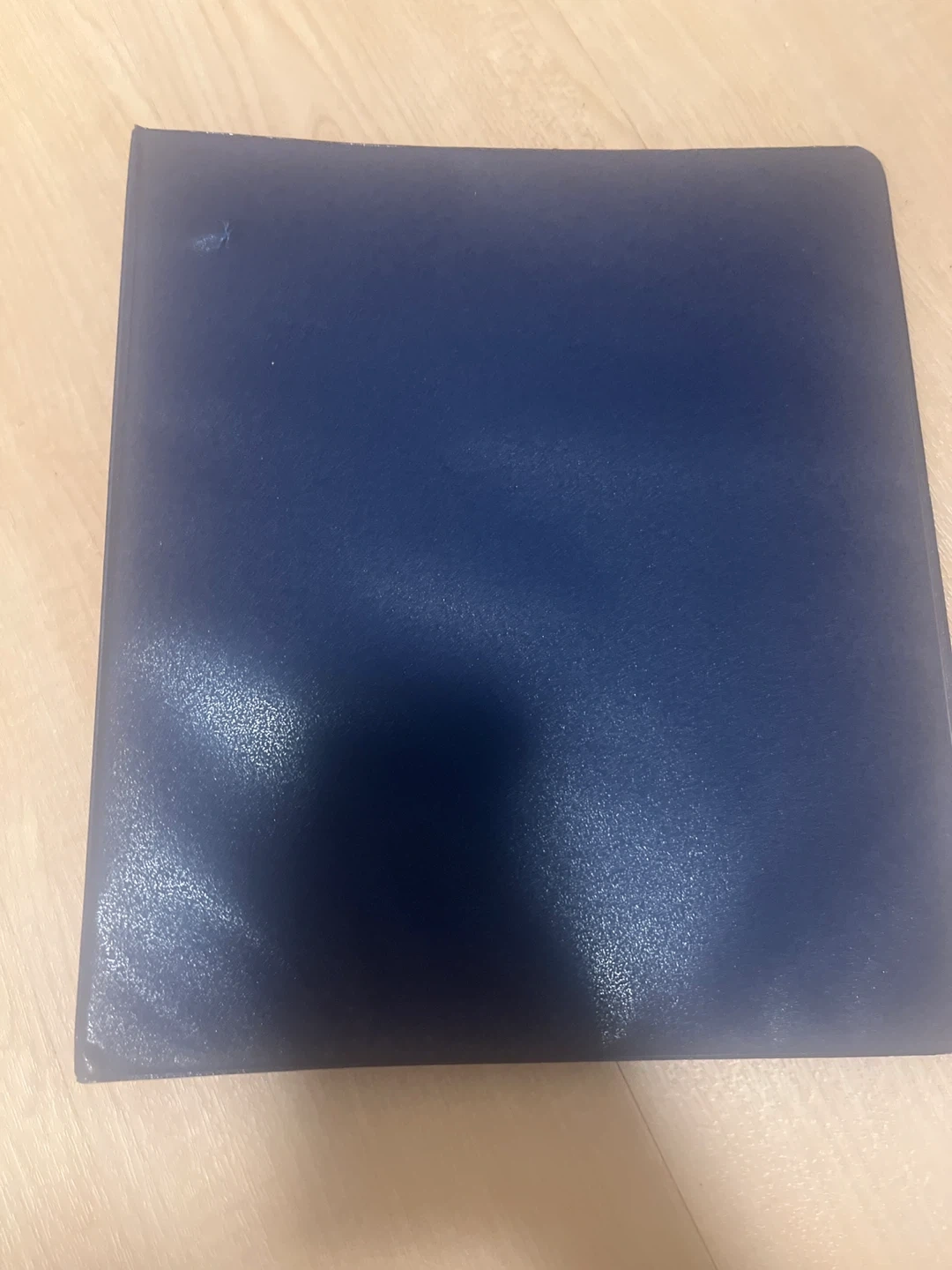 Selling a blue 3-ring binder. It's in good condition and ready to help you organize your documents or schoolwork. Perfect for keeping your papers neat and tidy!